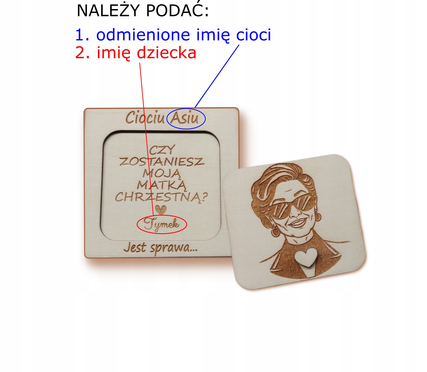Тема продажу - це елегантне дерев’яне запрошення. За допомогою його допомоги ви будете запитувати свого двоюрідного брата / сестри / друга / тітки оригінальним способом / тощо , що вона стає хрещеною батьком вашої дитини. Гарантоване сюрприз! Це також буде чудовим сувенірам протягом багатьох років!
