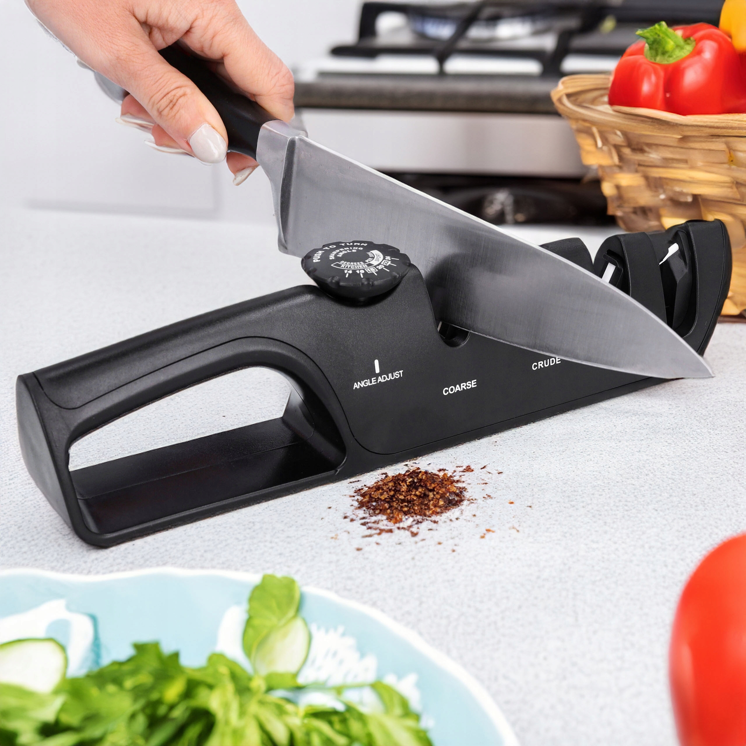 Травпа ножа з регулюванням кута заточення є обов'язковою на кухні тих, хто цінує ідеально загострених інструментів. , адаптований до різних типів лопатей , дозволяє відновити ідеальну різкість навіть самих ударних ножів.