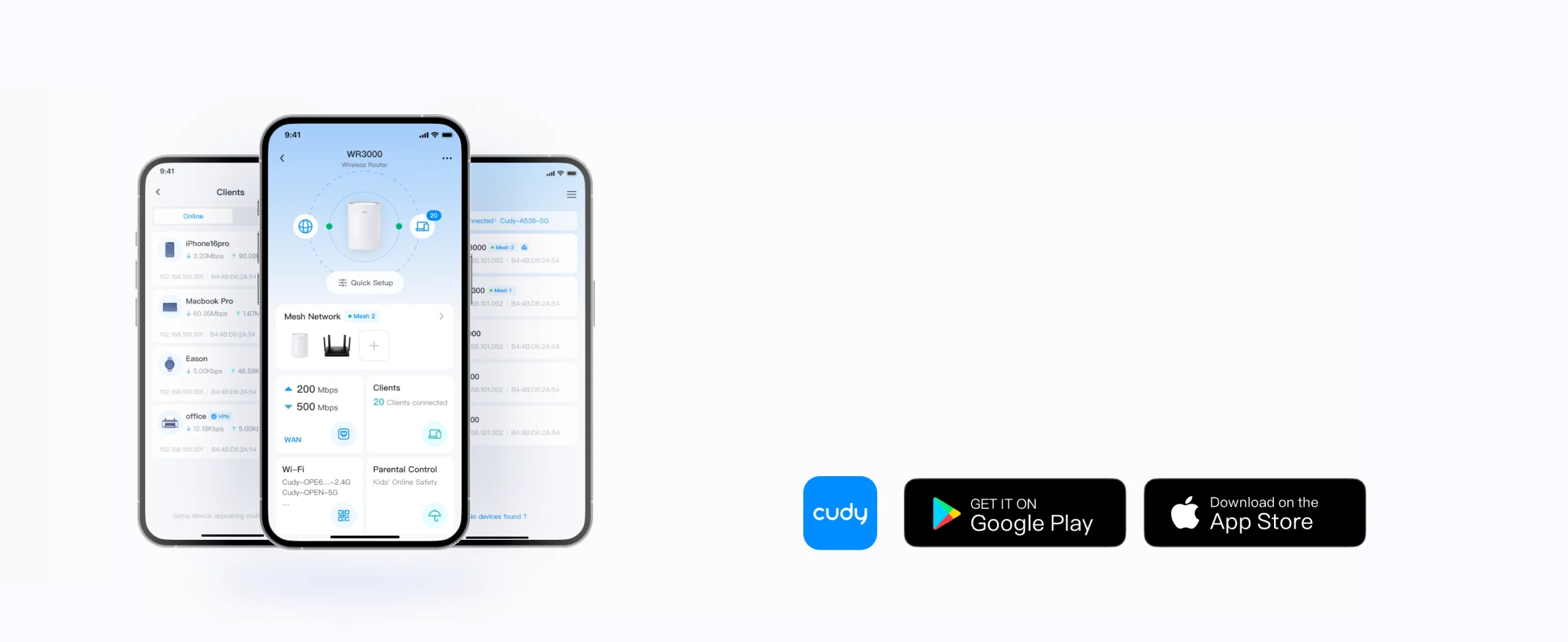 Керування мережею з телефону. Ця модель підтримує дистанційне управління в хмарі та локальному контролі за допомогою програми Cudy.