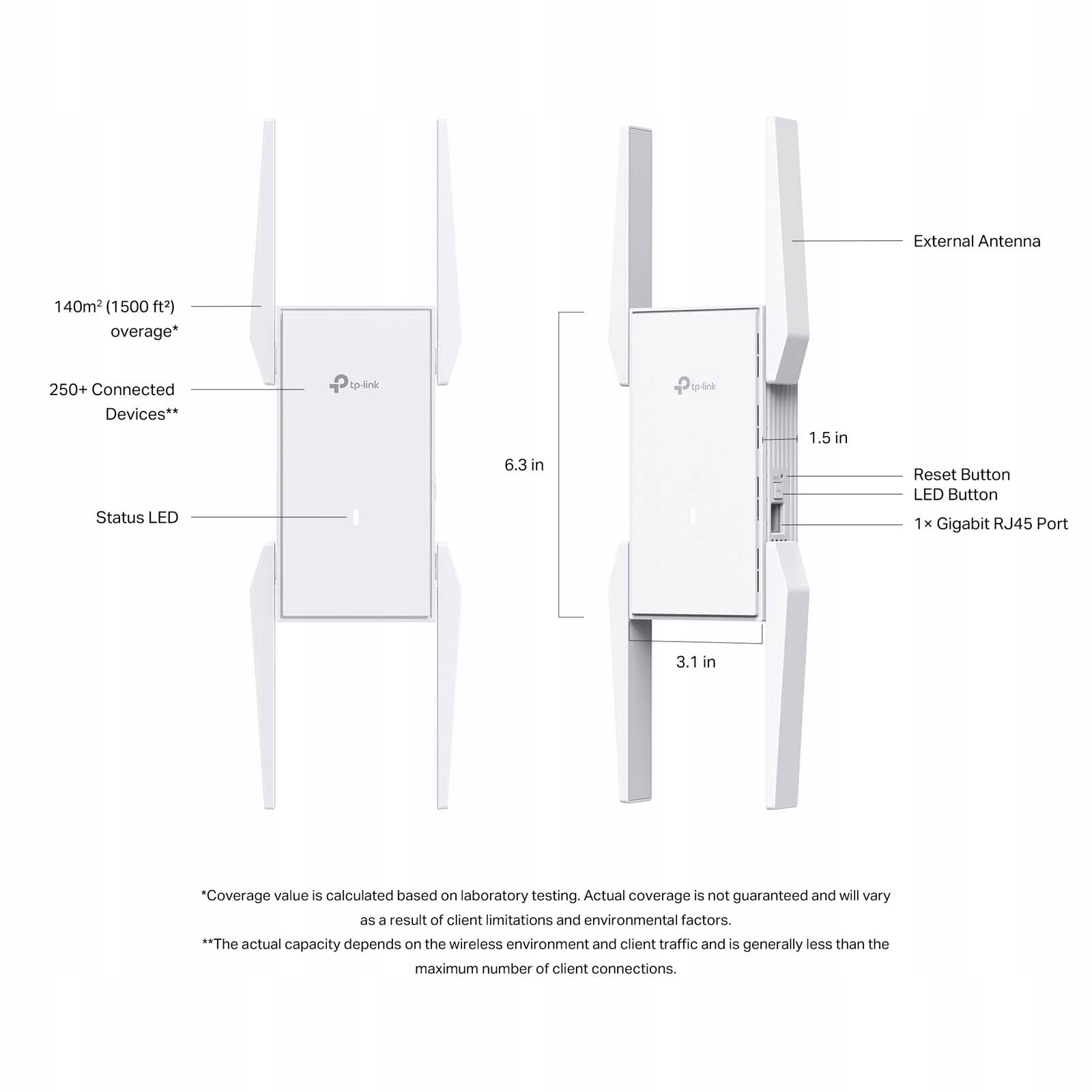 - Seamless Mesh Networking: supports Omada Mesh and Roaming, providing a reliable network, ideal for large -scale scenarios AC power supply (plug to the socket) for flexible implementation