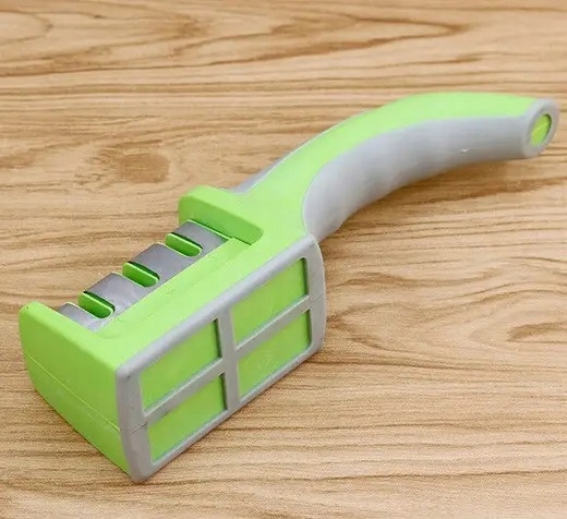 - Гумові підошви на підошві запобігають випадковому зісковзуванню точила, що робить процес заточування ефективним, зручним і безпечним. Завдяки стильному дизайну точилка стане справжньою окрасою кухні і не займе багато місця. він також легкий і компактний, його легко зберігати та транспортувати.