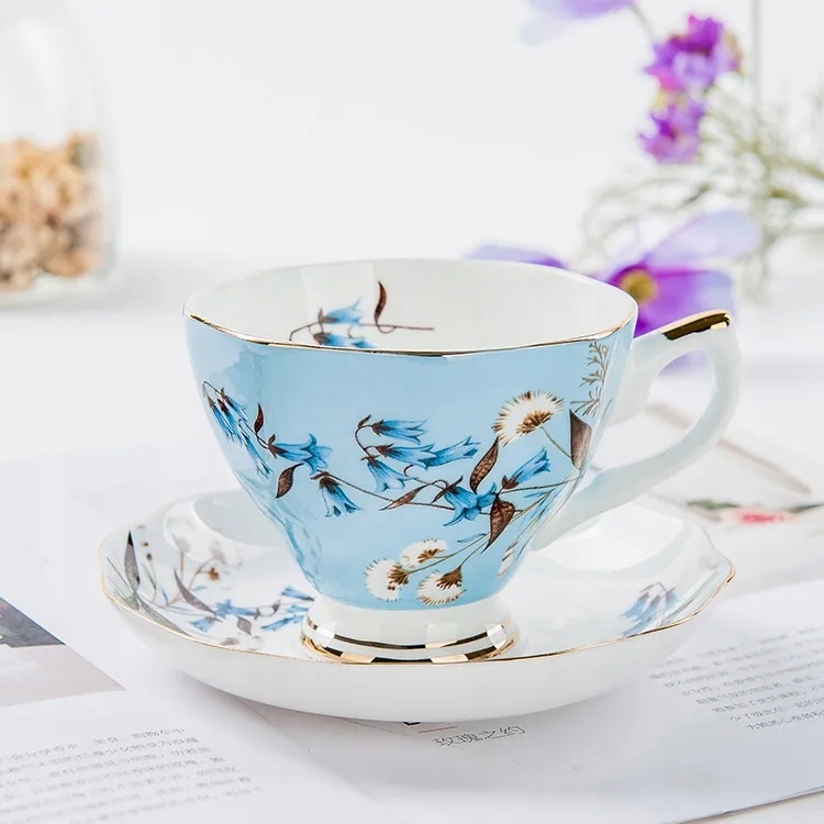 Кава або чайна чашка 220 мл з блюдцею синього кульбаби, яка є частиною серії колекцій англійської. блиск, а також виняткова сила, зберігаючи легкість та делікатність.