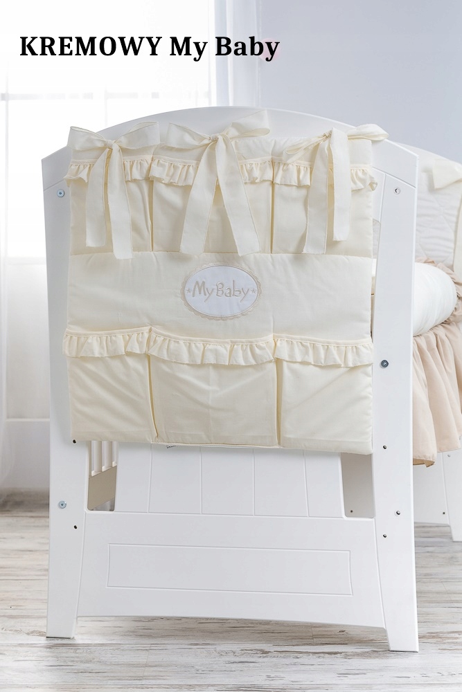 Тримач для ліжечка має кілька кишень різного розміру - в нього можна помістити не тільки дрібниці, а й більші речі - наприклад, підгузки.