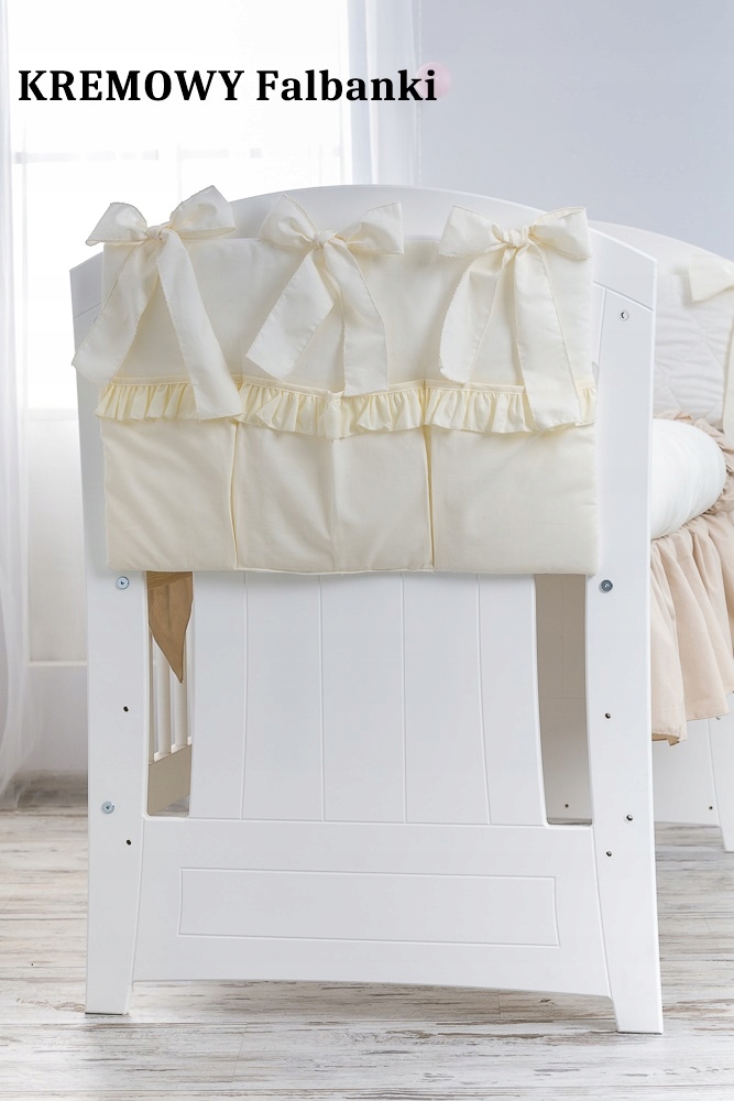Він пошитий так, що легко кріпиться до каркаса ліжка - для цього використовуються декоративні стяжки. Завдяки їм тримач для ліжечка можна легко зняти або повісити в інше місце