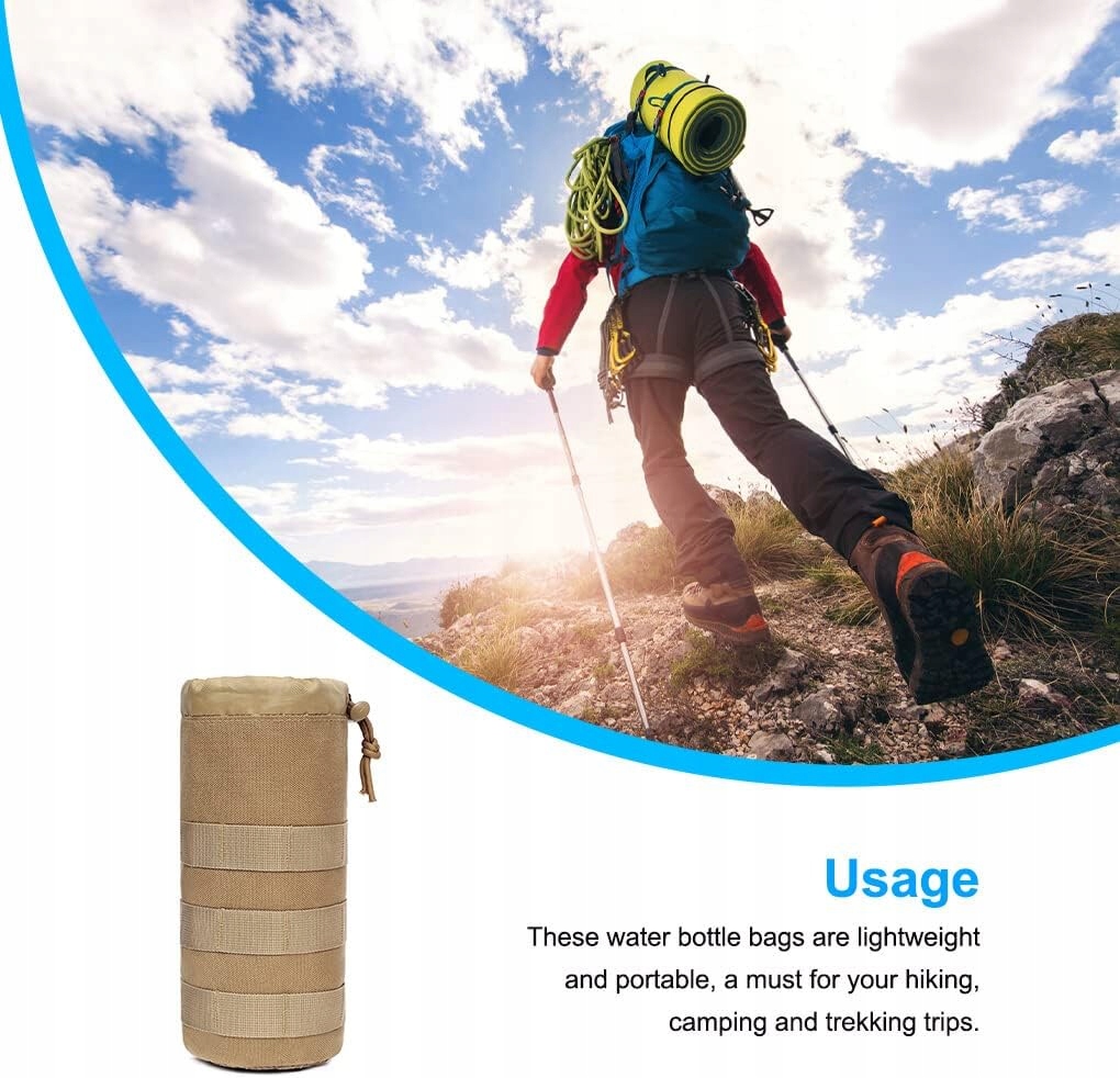 - Функції: цей мішечок для пляшки з водою запобігає ударам пляшки, щоб подовжити час використання пляшки, його можна прикріпити до вашого рюкзака за допомогою пряжок