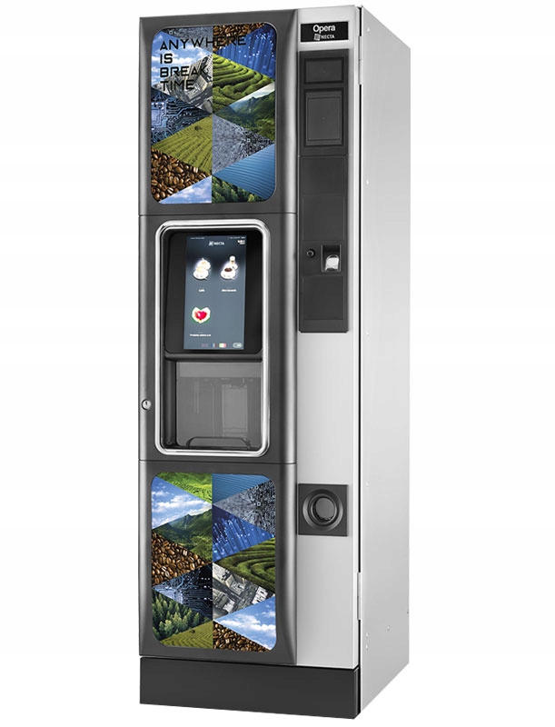 Найкраща електронна технологія та найкраща механічна система для максимальної простоти керування та найкращого досвіду користувача: це Opera Touch. Все обертається навколо незвичайного 13,3-дюймового екрана Full HD, який радикально розширює пропозицію напоїв і обсяг інформації, доступної споживачеві, порівняно з традиційним диспенсером. Opera Touch була розроблена, щоб забезпечити операторам надзвичайну простоту керування: завдяки інноваційній електроніці, яка успішно використовується в моделях 9100 і Kalea, швидке програмування та налаштування функцій диспенсера більше не є проблемою Нова технологія, максимальна інтерактивність, продуктивність преміум-сегменту: Opera Touch підкорює кожного більш цікавою ідеєю для Vending.