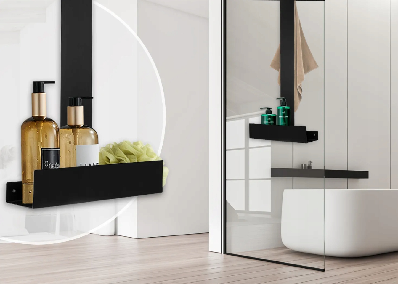 Практична та довговічна металева полиця для ванної кімнати висіла до кабіни. Він ідеально використовуватиметься для зберігання миючих засобів, косметики та інших дрібниць. Це дозволить ванній кімнаті зберегти порядок і замовлення, а його сучасний вигляд буде додатковим декоративним елементом ванної кімнати.