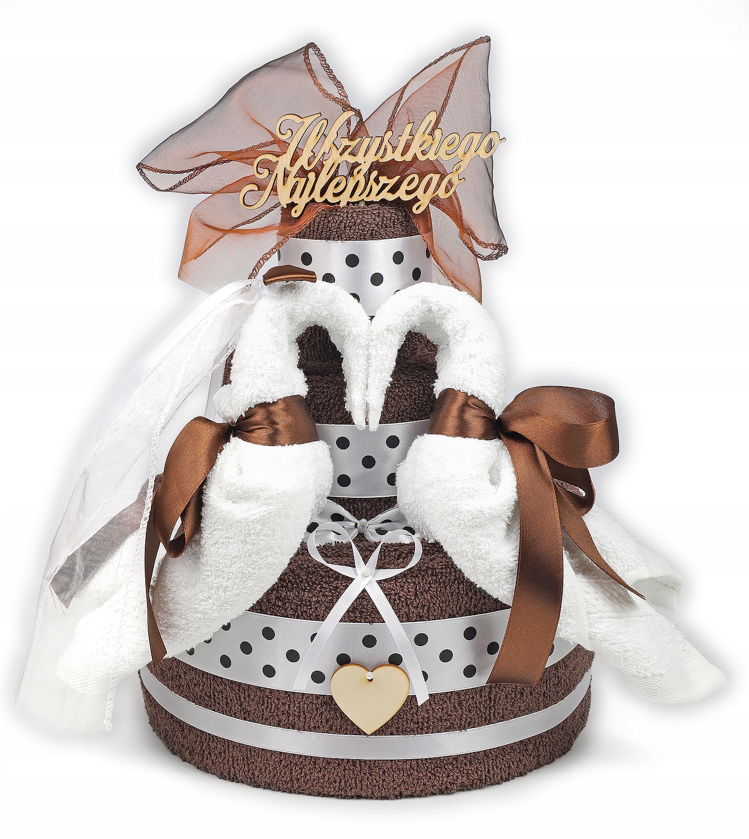Ми пропонуємо вам унікальний торт із рушників як оригінальний і практичний подарунок. Завдяки використанню бавовняних рушників, крім естетичних міркувань, комплект має також практичні функціональні властивості. Наш задум полягав у тому, щоб кожен із компонентів набору міг використовуватися та знаходити застосування в повсякденному житті. Це ідеальна пропозиція для всіх, хто шукає оригінальний подарунок, завдяки його функціональності ви можете звести ризик небажаного подарунка до нуля.