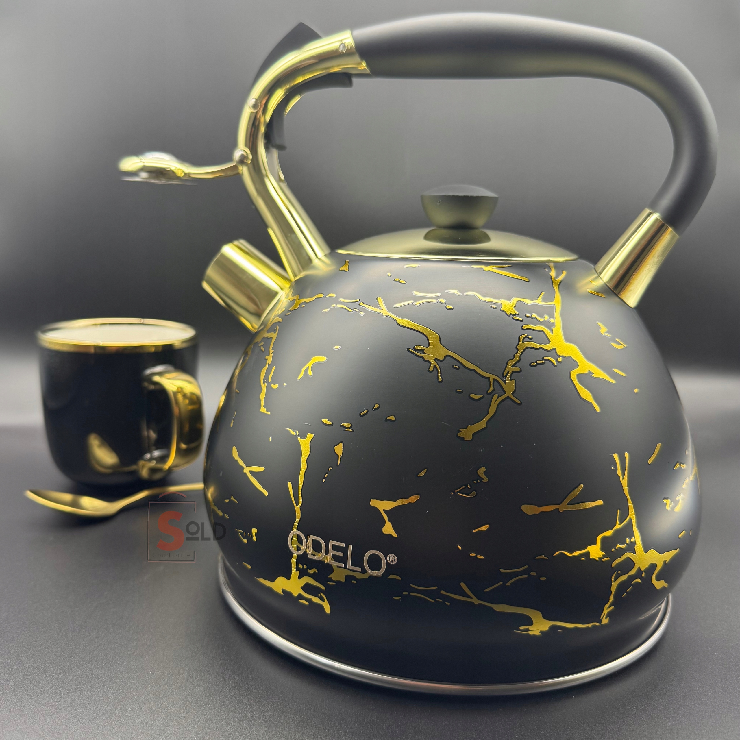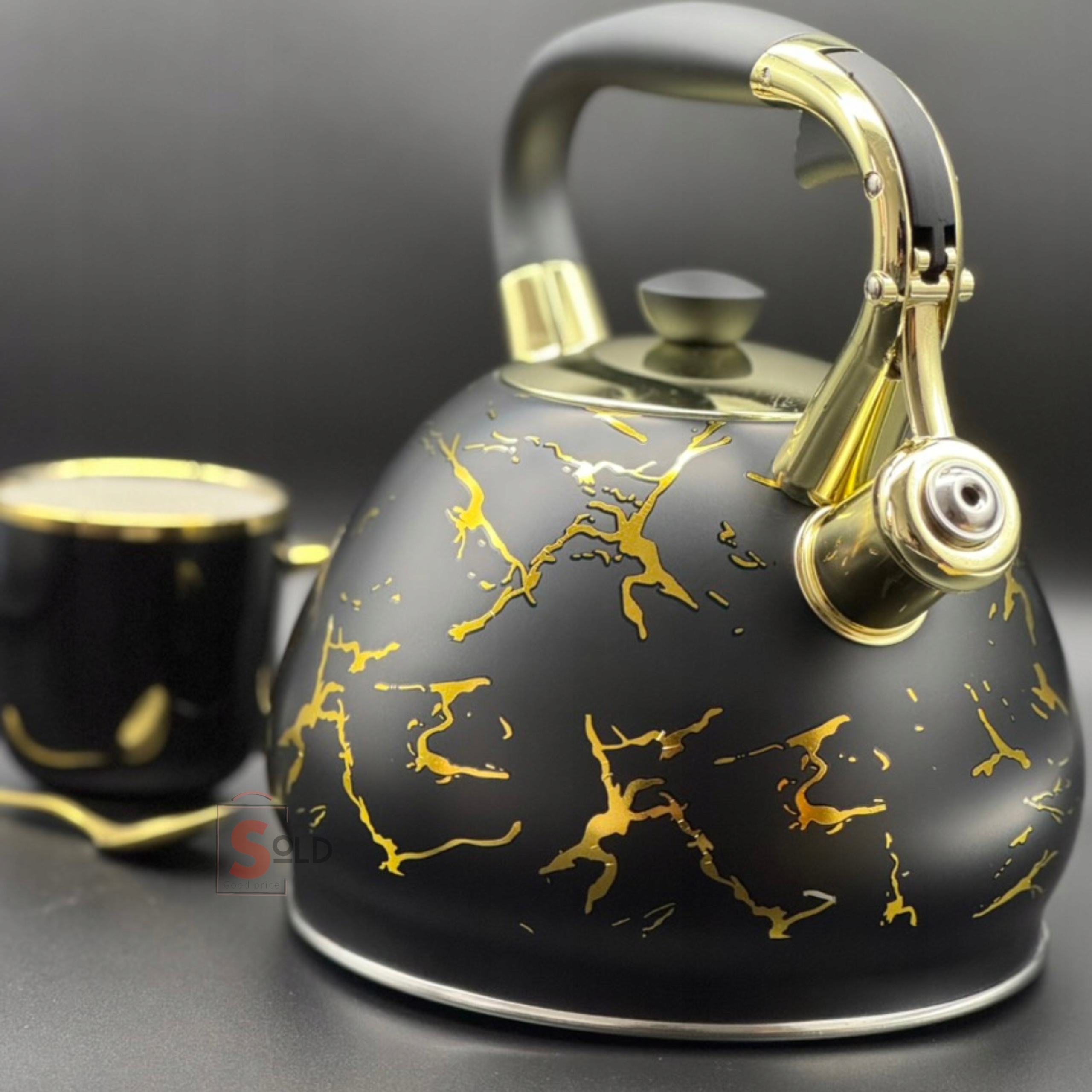 Великий ЧАЙНИК зі СВИСТКОМ ДЛЯ ГАЗОВОЇ ІНДУКЦІЇ 3 л елегантний ЧОРНЕ ЗОЛОТО Глянцевий