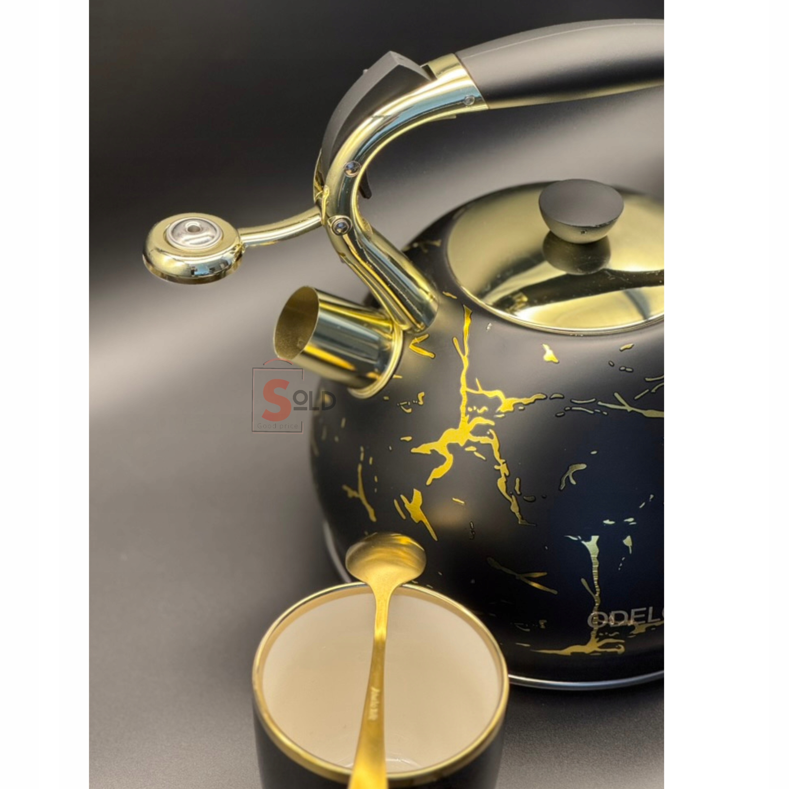 ✅Елегантний дизайн: Чайник із елегантним дизайном і золотими вставками додає блиску будь-якій кухні.