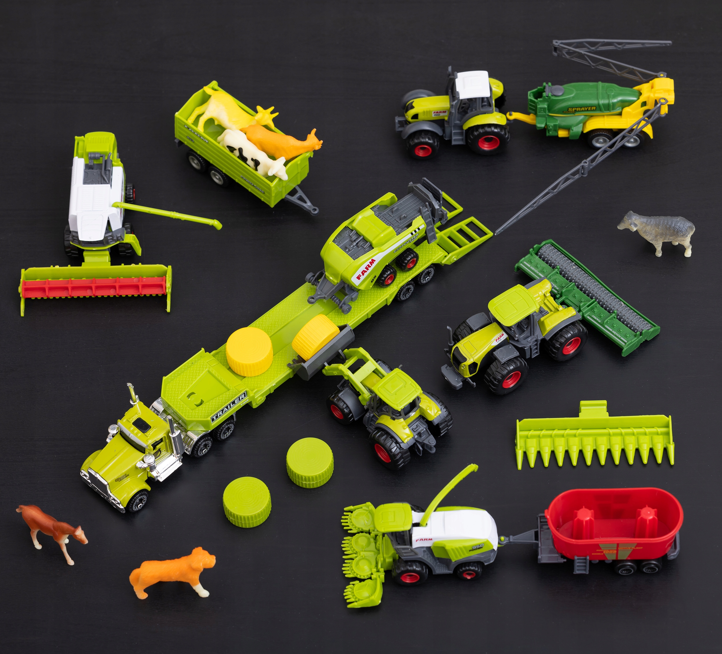 Дитина може створювати власні транспортні засоби, оскільки в набір входить кілька різних тракторів і різних причепів. Залежно від кмітливості дитини, транспортні засоби можна створити для косіння трави, перевезення врожаю чи тварин.