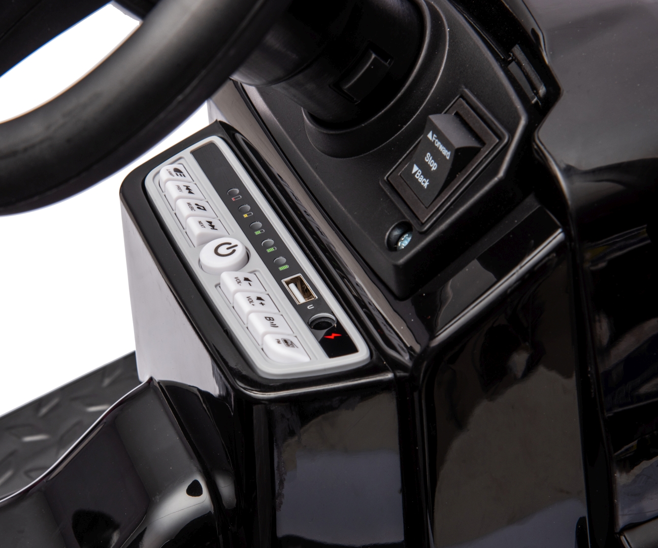 фермер вражає не лише високою якістю та привабливим зовнішнім виглядом, але й довговічністю. Він виготовлений з міцного матеріалу та витримує інтенсивну забаву. Музична панель, багата на забезпечення дитині максимальною розвагами, вона має: радіо, mp3 з багатофункціональними музичними ефектами, USB, Bluetooth, можна відрегулювати об'єм +/-, а механічна система побудована для захисту дітей.