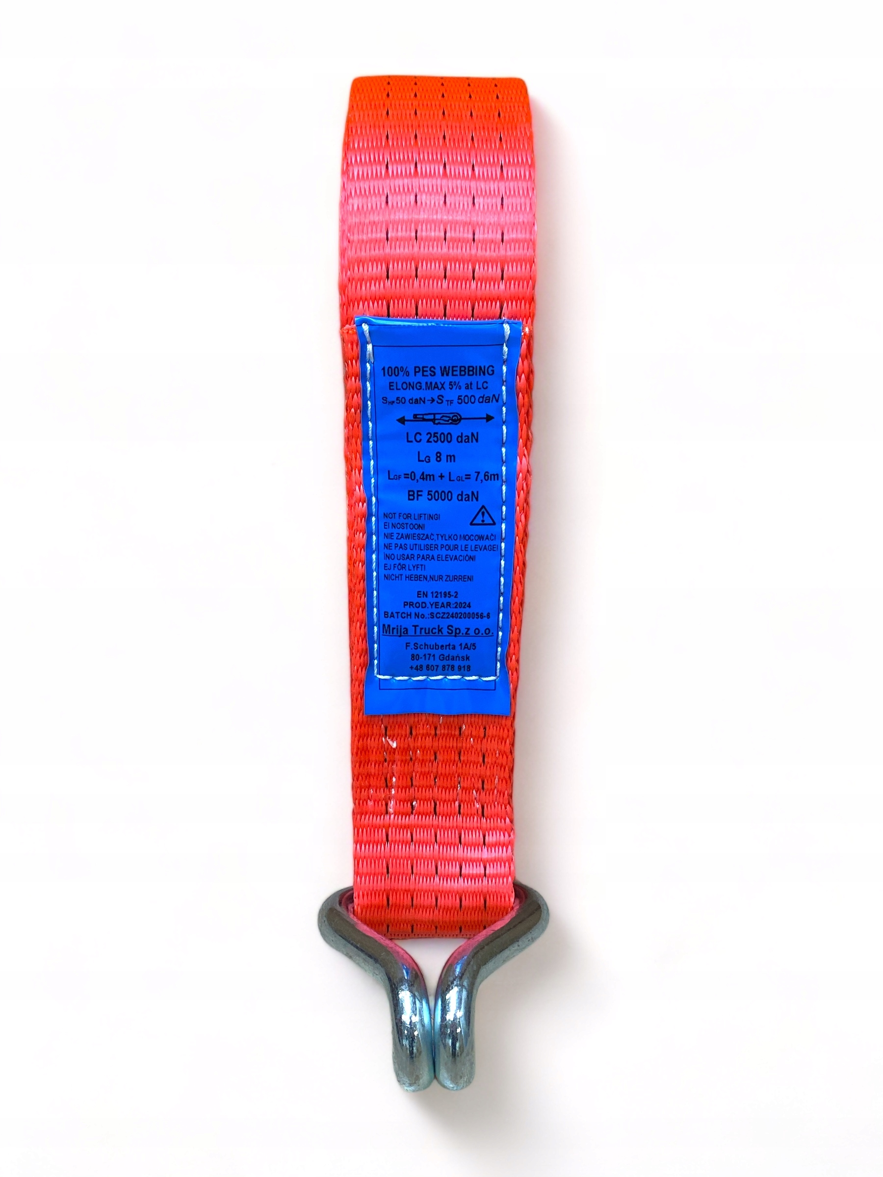 Транспортні ремені ERGO 8 м/ 5 т/ 50 мм з натягувачем і довгою ручкою TUV GS