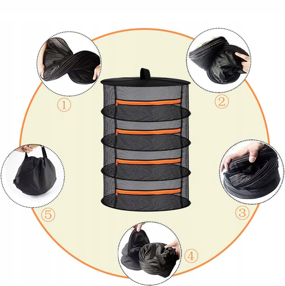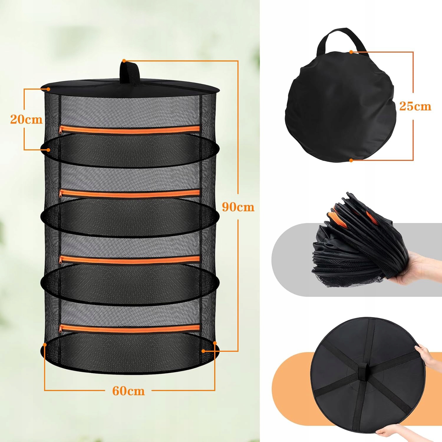 - Наша сушильна сітка має 20 см висотою на шар, загальна висота 80 см і діаметром 60 см після розгортання.