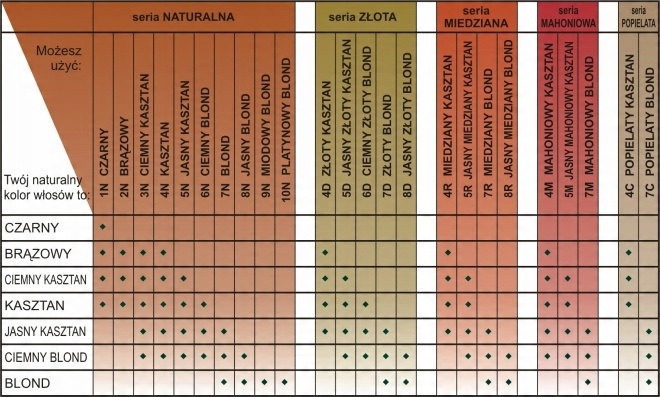 Завжди вибирайте колір, який на 1-2 відтінки світліший за ваш або потрібний вам колір із палітри, яку ви хочете отримати, оскільки в результаті кольори стають сильнішими. Увага! кольори 8N, 9N і 10N освітлюють на два відтінки! Кольори від 1N до 8N - серія Natural, покривають 100% сивини з першого використання. Якщо у вас мало сивого волосся, ви можете вибрати будь-який колір.