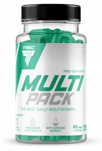 Trec Multi Pack - комплексний комплекс вітамінів, мінералів і метаболічних активаторів, який зміцнює організм у фізичних і психічних станах криза.. В результаті стресу, погано збалансованого харчування або інтенсивних тренувань потреба в цих речовинах, які є ключовими для підтримки високої фізичної форми та бадьорості, зростає. Trec Multi Pack рекомендується всім фізично та розумово активним людям як доповнення до щоденного раціону з легкозасвоюваними вітамінами та мінералами. p>