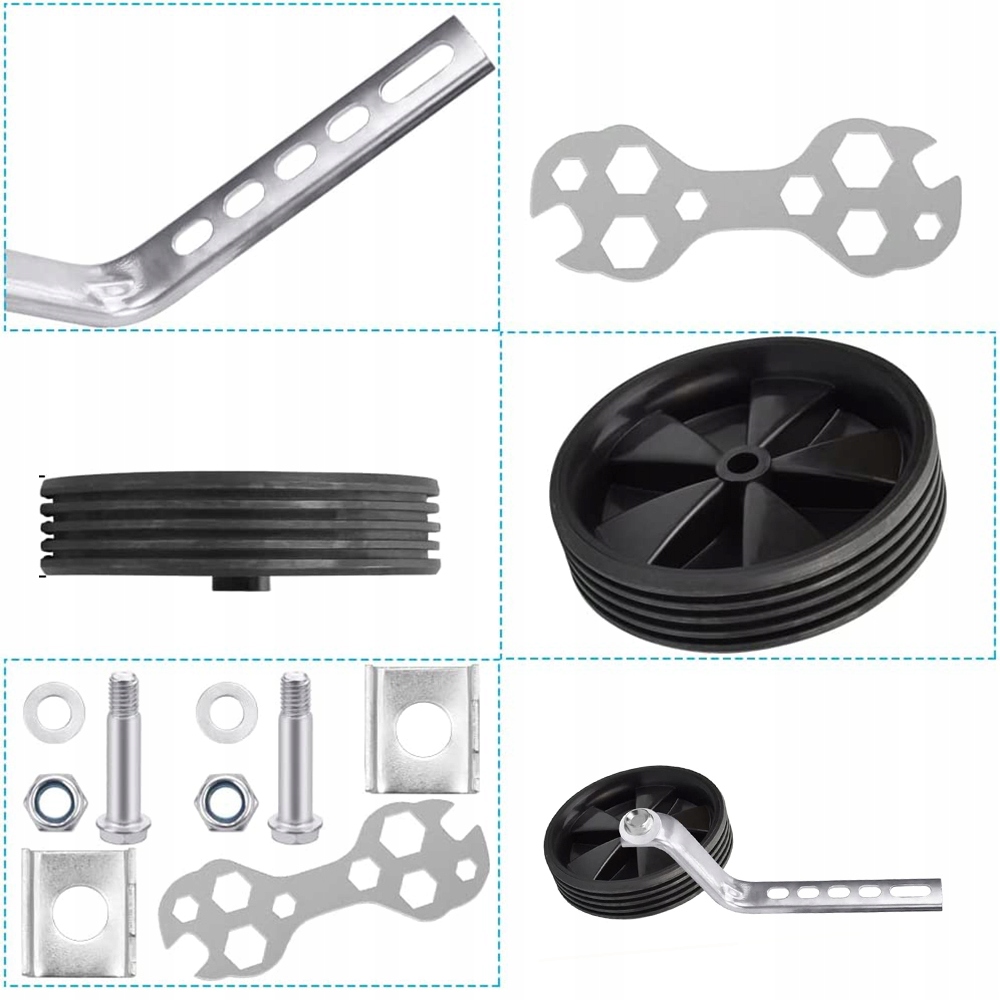 ✔️ 【Набір із направляючими колесами】: продукт складається з 1 пари чорних коліс, 2 опорних рам і відповідних гвинтів, а також 1 багатофункціонального ключа. Велосипедний стабілізатор виготовлено з високоякісного пластику, який забезпечує додаткову стабільність і безпеку, щоб діти були в безпеці, міцні та довговічні.