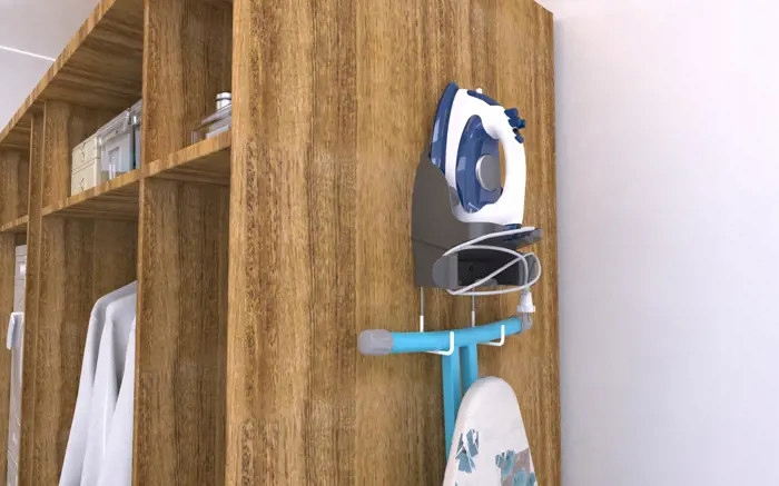 - Функціональність – дозволяє безпечно та організовано зберігати праску та прасувальну дошку, що допомагає тримати кімнату в порядку.