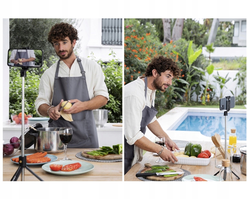 Стійка обладнана пультом дистанційного керування Bluetooth, який, підключивши його до телефону, буде виконувати функцію кнопки спуску затвора. Завдяки цьому вам більше ніколи не доведеться встановлювати автоспуск на телефоні.