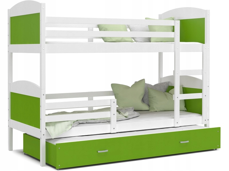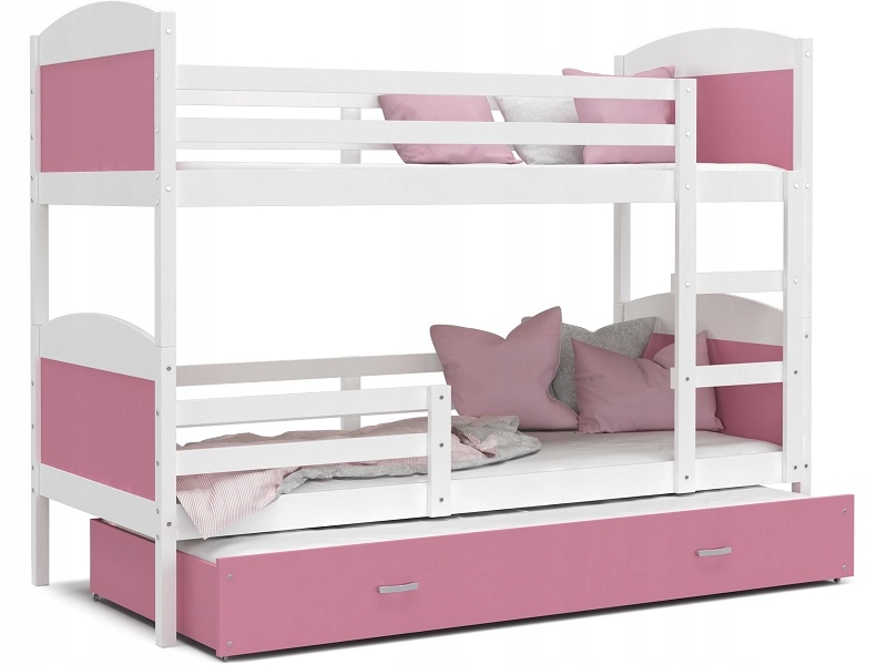 Двох'ярусне ліжко MATEO 3 200х90 - альтернатива для великих сімей, оскільки має 3 місця для відпочинку. Корпус виготовлений з плити МДФ, що гарантує високу якість меблів. Стійка конструкція гарантує безпечне використання меблів. Заокруглені вставки створюють відчуття захисту для наших дітей під час сну. Ліжечко пофарбоване безпечними для дітей екологічними фарбами. У набір входять поролонові матраци та каркас FLEX, що забезпечує гарний сон наших малюків.