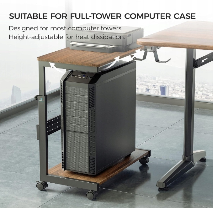❤ ергономічний комп'ютер eureka - це інноваційне рішення, яке забезпечує функціональне зберігання комп'ютерної вежі та додатковий простір для офісних аксесуарів. Завдяки коригуванню висоти вручну (від 57 см до 73 см) ви можете відрегулювати підставку до своїх потреб, збільшуючи відстань між вежею та поверхнею столу, що допомагає в кращому тепловому розсіченні. Підставка підтримує більшість комп'ютерних корпусів на ринку, включаючи повну вежу ATX. Нижній шар призначений для зберігання комп'ютера, а верхній може вмістити принтери, рослини, документи чи журнали. Крім того, Pegboard ззаду дозволяє організовувати офісні аксесуари, а мишачий накладний забезпечує комфорт. Перемістіться по килиму, подвійні колеса з гальмами забезпечують стабільність навіть при повному навантаженні. У свою чергу, міцна сталева порошкова структура гарантує міцність і стійкість до пошкодження. P> ➡ Налаштування висоти: дозволяє регулювати відстань між вежею та столом, покращуючи вентиляцію 🔧 ➡ Багатофункціональність: верхній і нижній шар для зберігання офісного обладнання та аксесуарів 🖨 ➡ ➡ мобільність: чотири поворотні колеса (360 °) , Легкий рух на килимі 🚗 ➡ Стабільність: Подвійні колеса з гальмом зберігають підставку на місці 🛑 ➡ міцна конструкція: потовщена сталева сталева рама забезпечує довговічність 💪