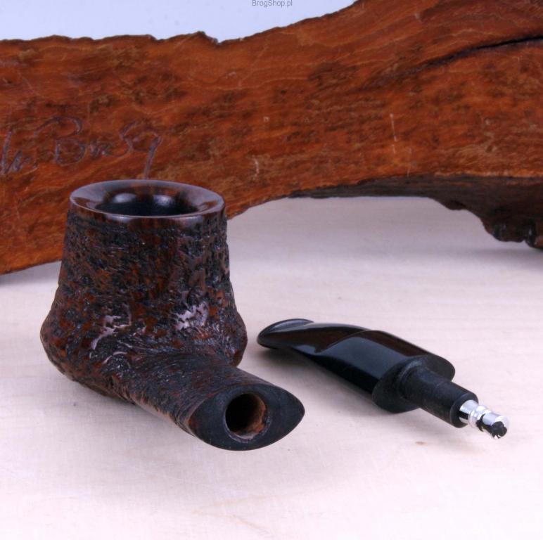 Цікава і зручна люлька ручної роботи з італійського шипшини в нашій майстерні. Він характеризується плавно нахиленою головою у формі вулкана та овальною широкою шиєю. Камін стандартної місткості, покритий прекарбонатом, увінчаний гарно обробленим бортиком. Ебонітовий мундштук оснащений знімним конденсатором, який ефективно охолоджує дим, що потрапляє в рот. Люлька в чохлі та оригінальна коробка Bróg Pipes можуть стати вишуканим подарунком. Шипшина - Італія/Тосканія, шипшина - Manno, сорт - Prima.