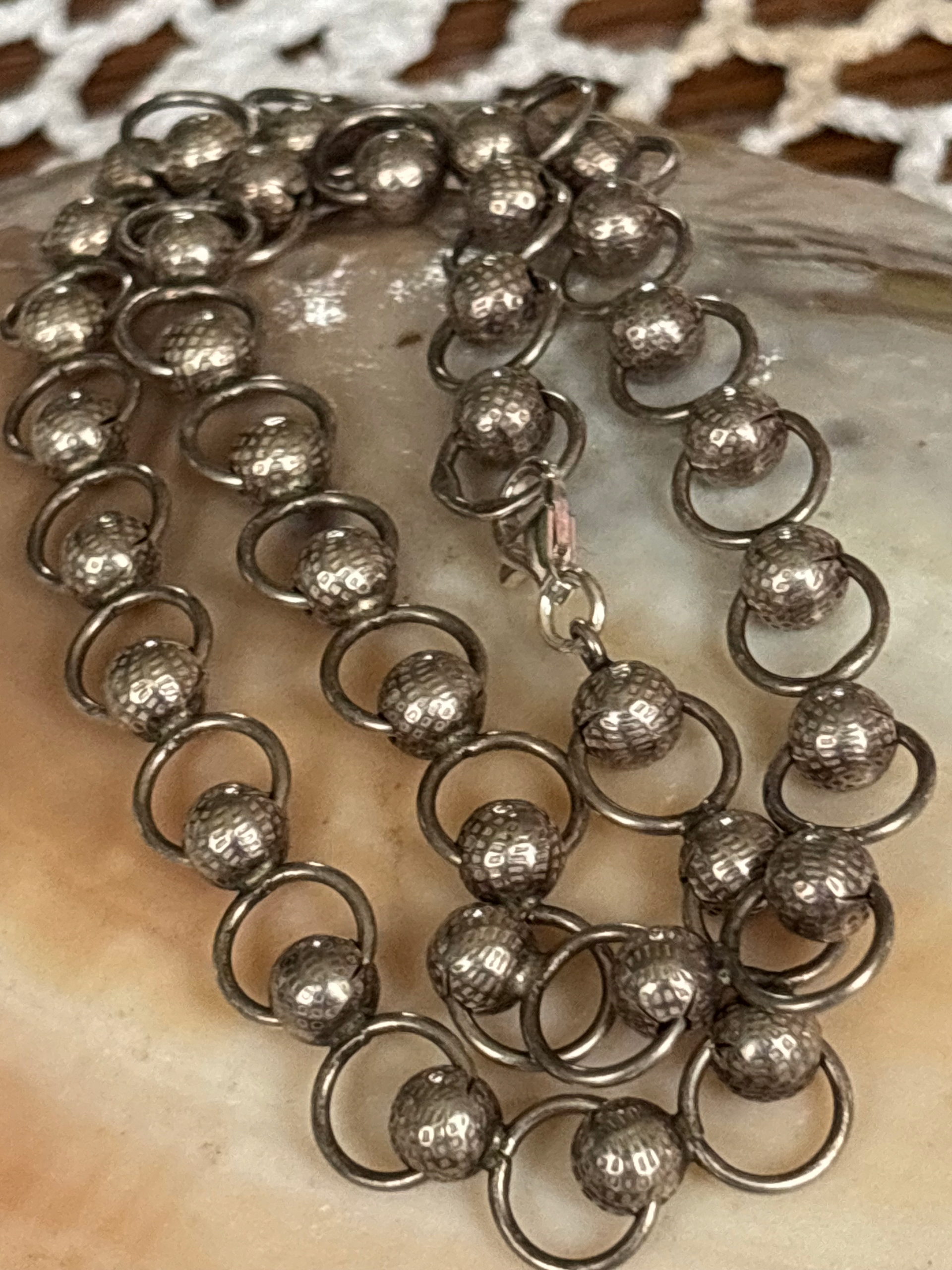 TS Łancuszek naszyjnik stary srebrny kulki ciekawy wzór cz. kompletu PRL