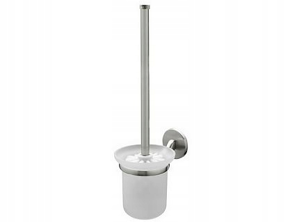 туалетна щітка з ручкою з колекції Вірджинії. Встановлений на стіну гвинтами або клеєм Bisk Fest. Зроблено з Znut в матовому нікелі та замерзлому склі.