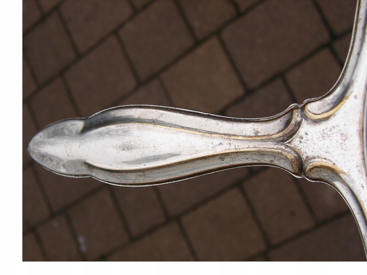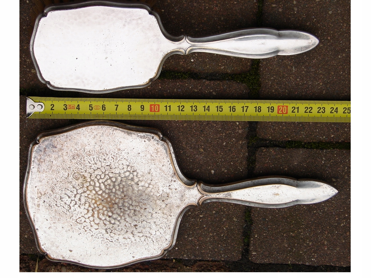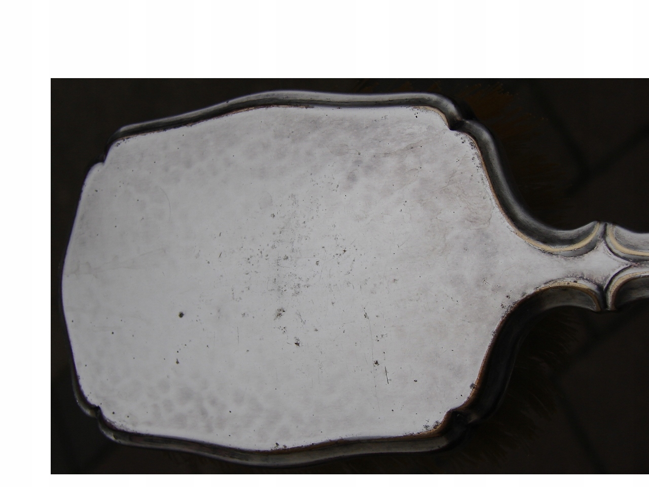 Посріблення має локальні потертості та зміну кольору. Дзеркало легко читається та має невеликі локальні подряпини.