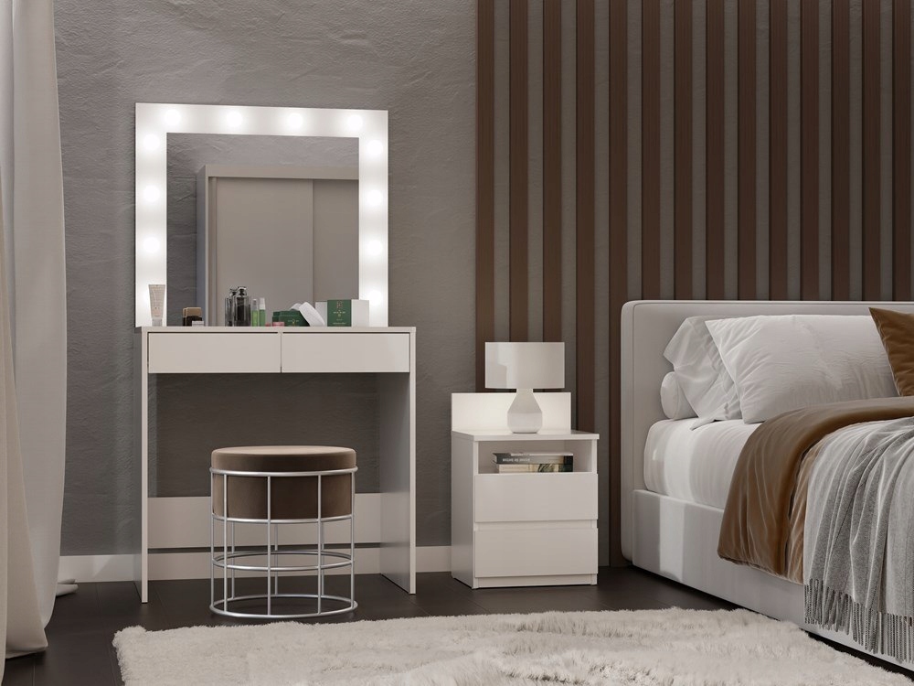Туалетний столик з дзеркалом і світлодіодним підсвічуванням - ідеальний предмет меблів для людей, які цінують комфорт і красу навколишнього середовища. Продуманий дизайн дозволяє зручно зберігати косметику та прикраси, а також може виконувати роль практичного письмового столу.
