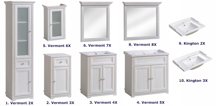 - Колір: Білий витриманий у стилішеббі-шик. Також можна придбати інші меблі для ванної кімнати з колекції Vermont. Створіть свій власний набір меблів для ванної кімнати у вінтажному стилі!