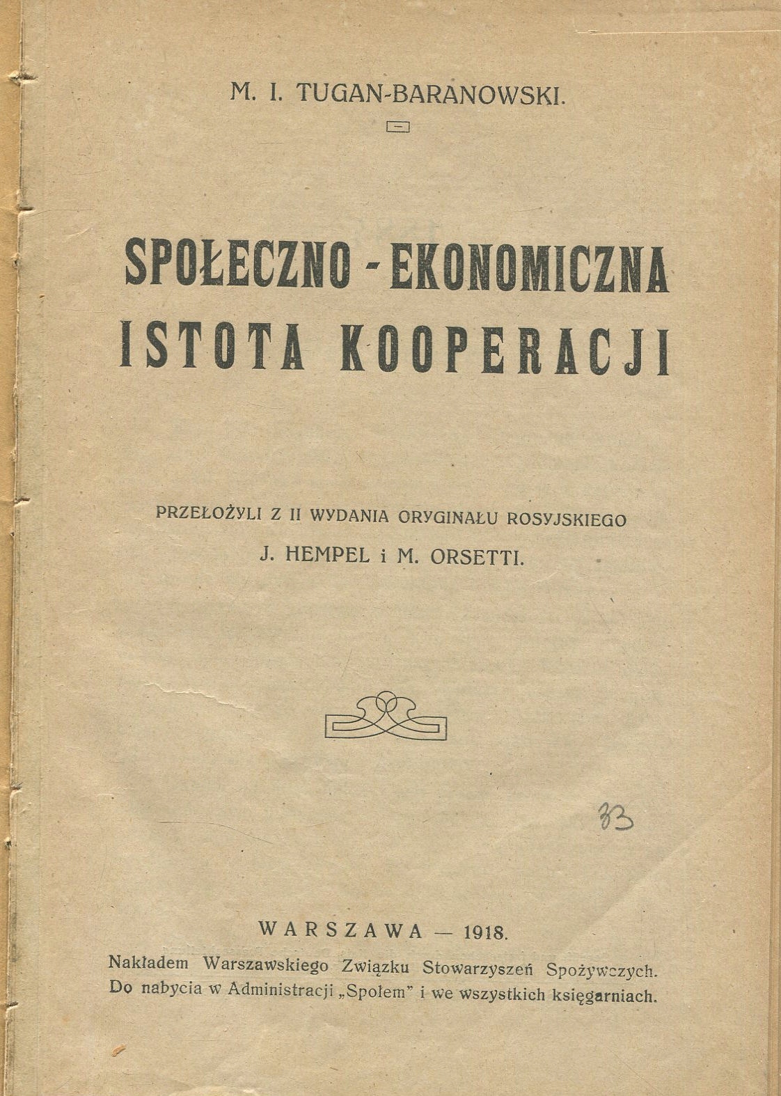 Tuhan-Baranowski SPOŁECZNO-EKONOMICZNA ISTOTA KOOPERACJI 1918