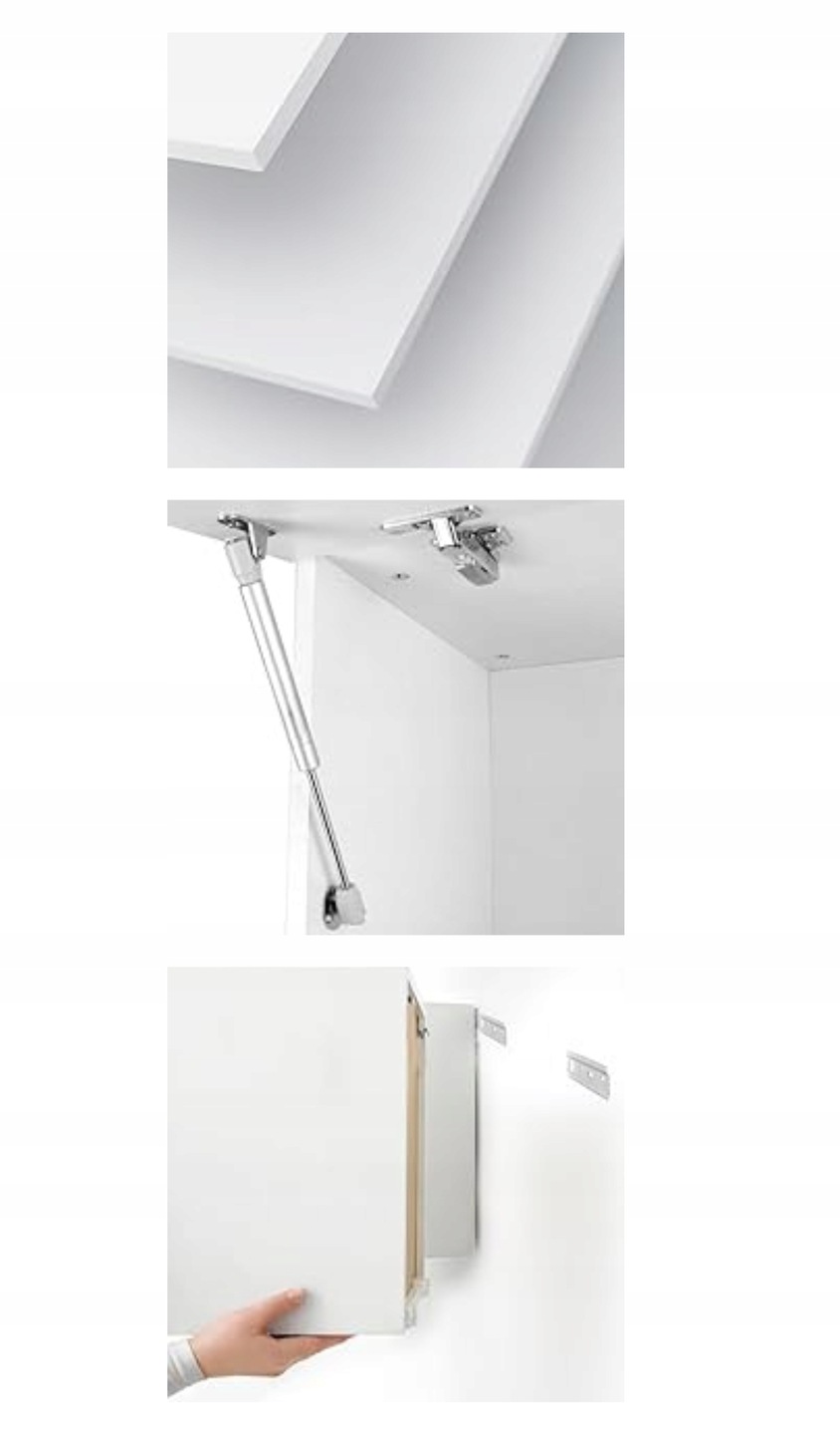 МІЦНІ МЕТАЛЕВІ ЕЛЕМЕНТИ - використовуємо петлі/підйомники відомих польських. виробники створюють бренди нашої продукції, завдяки яким фасад шафи відкривається та закривається плавно. Порада: якщо відстань між дверцятами завелика або замала, відповідно відрегулюйте гвинти на петлях.