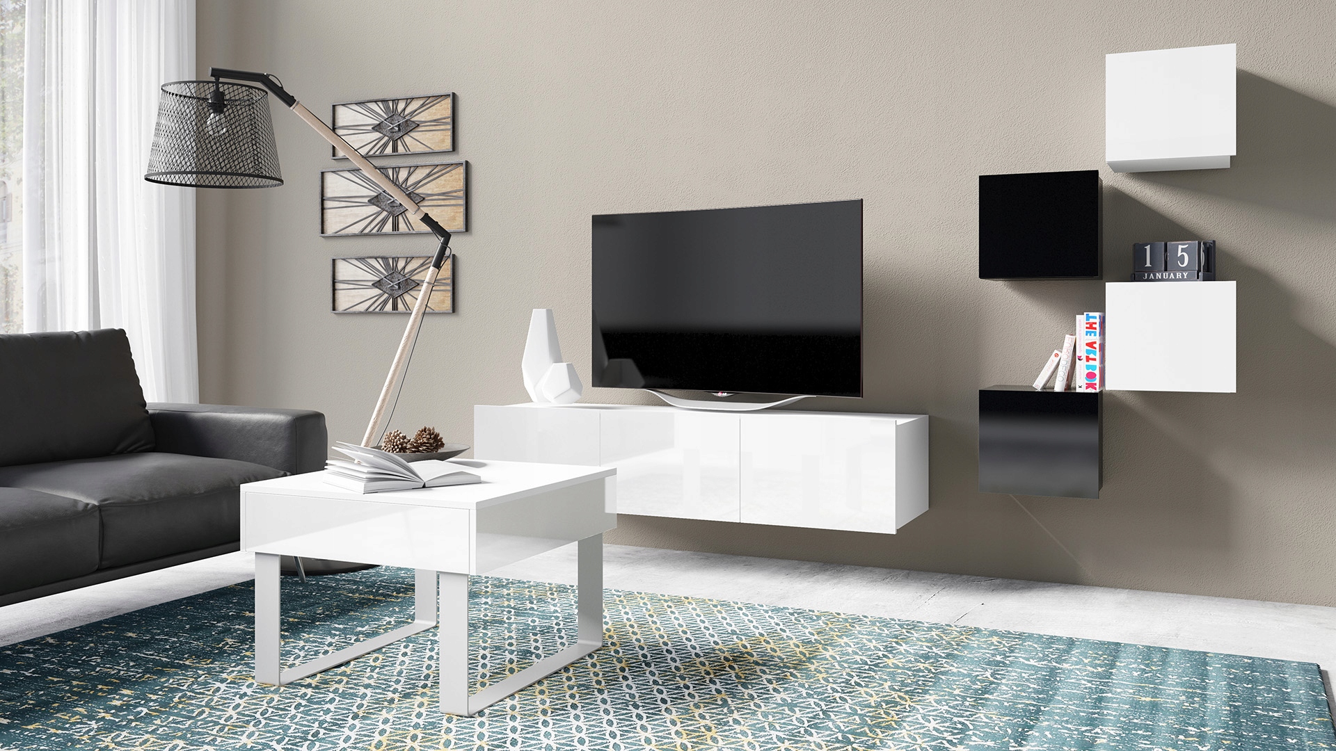 Підвісна тумба під ТВ, Білий, Чорний, Дуб Золотий, Меблі Gib 150x37x43 см