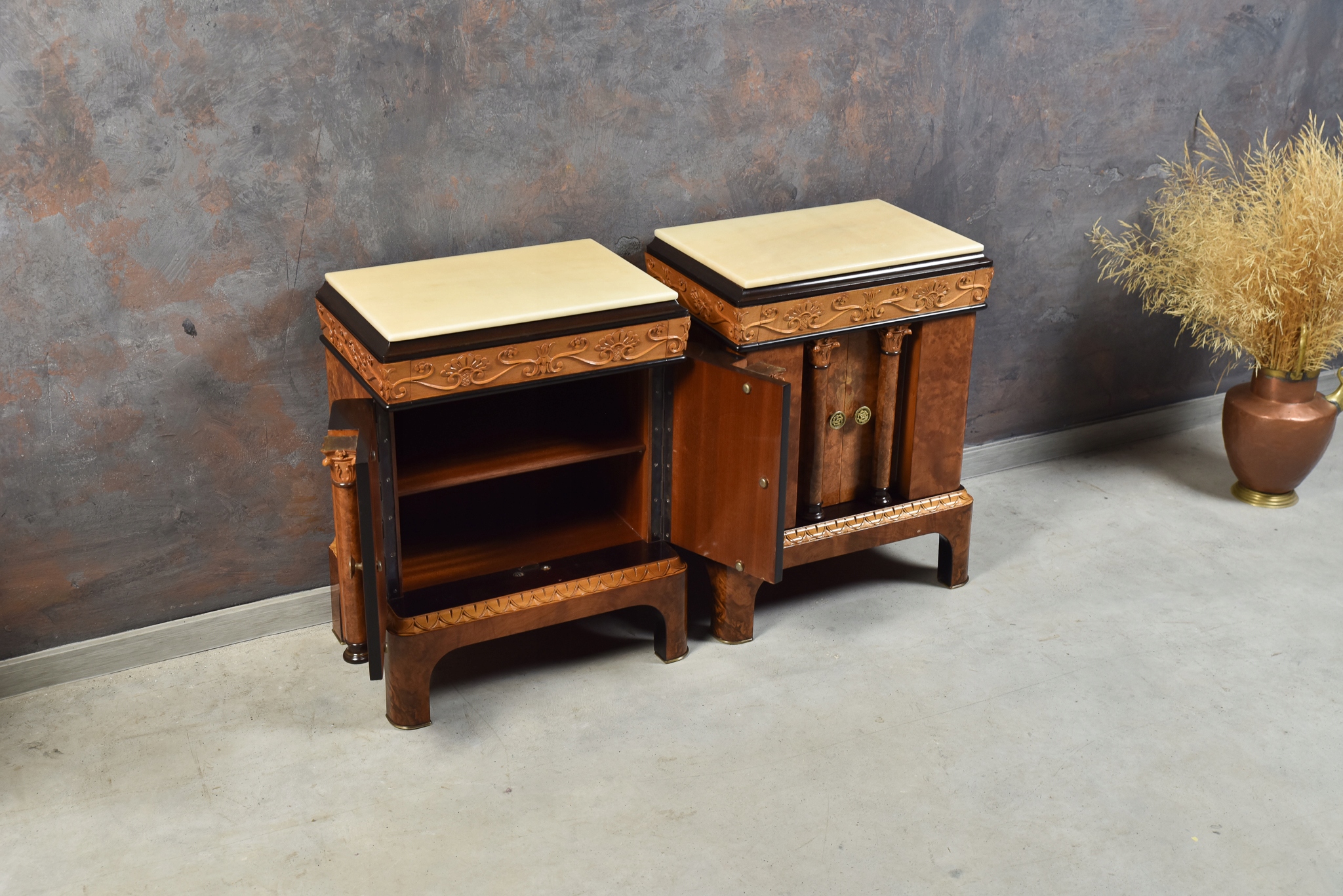 Виготовлені з масиву горіхового дерева, красиво декоровані, оригінальна латунна фурнітура, мармурова стільниця.