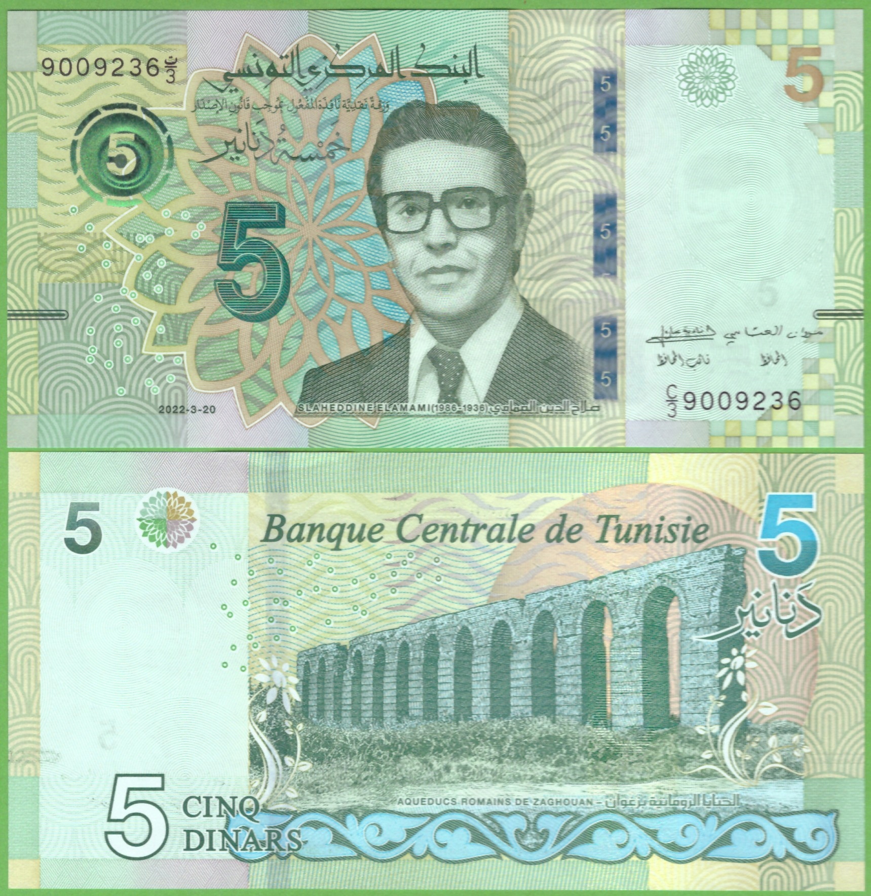 ТУНЕЗІЯ 5 ДИНАРС 2022 Р-В98 UNC ПРЕФІКС С/3
