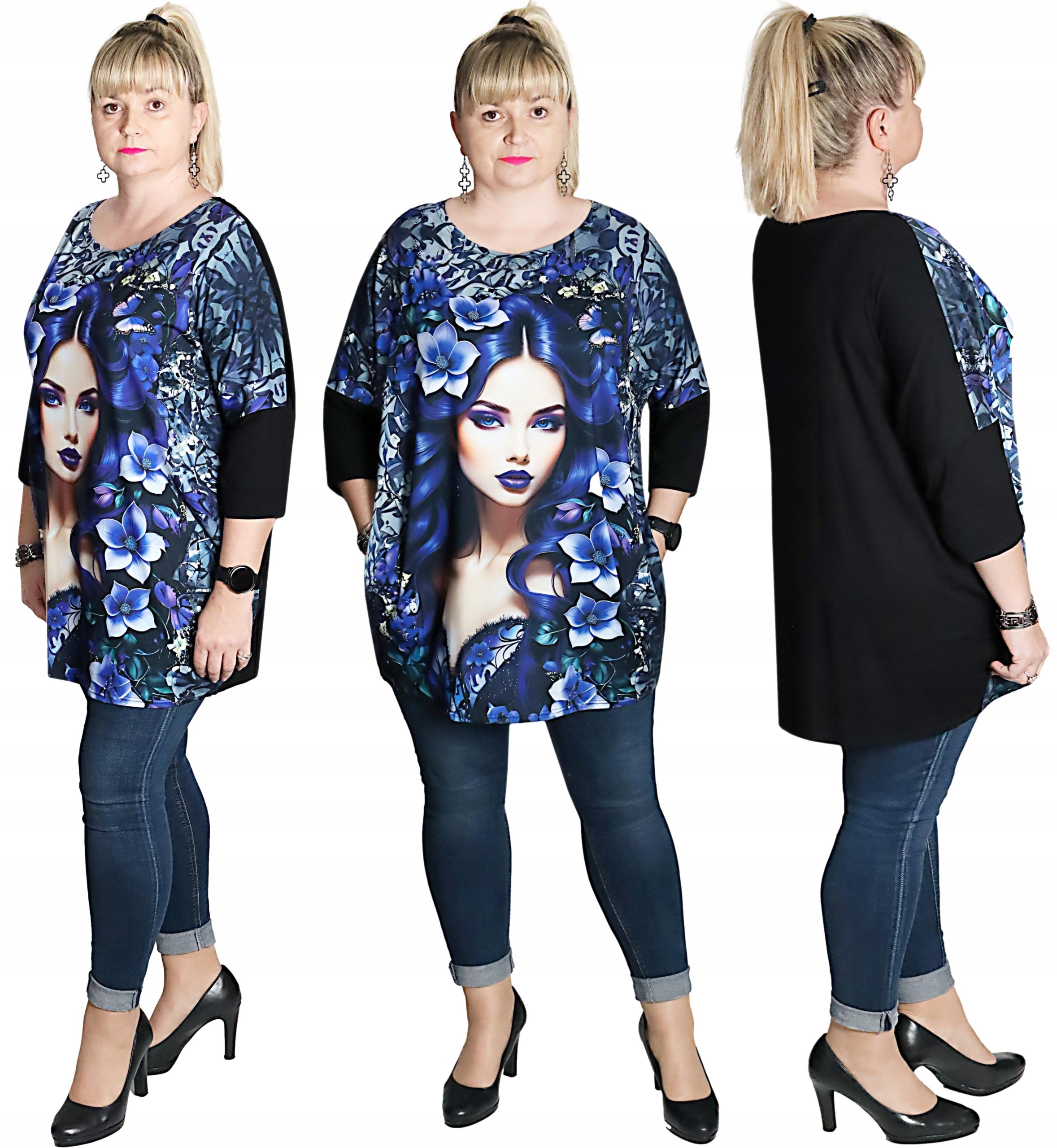 Туніка з приверненням очей -привернення мотиву на передній панелі -ідеальна пропозиція для багатьох стилів як спорту, так і більш елегантних. Туніка чорна гладка. Фасон/пухкий і вільний і вільний і вільно, даючи багато комфорту та добре покриваючий шлунок, з кишенями, зшитими в бічних швах. Рухи виготовлені з дихаючого, легкого та добре -стовбура (95%скло, 5%еластану), тоді як фронт є більш елегантним матеріалом, хоча він також дуже добре видається, завдяки якому він не стримує наші рухи (95%поліестер, 5%еластан). Розміри