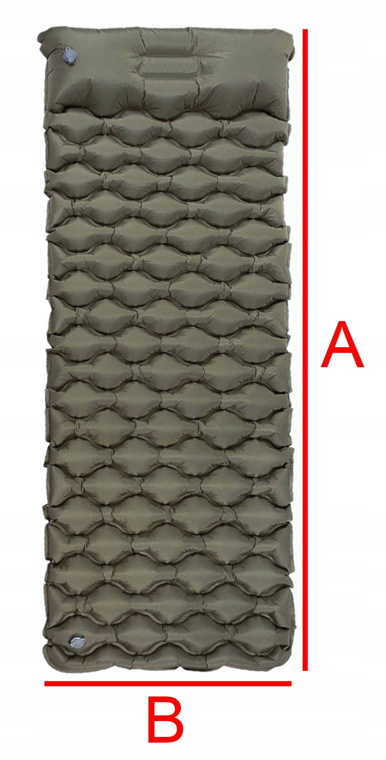 Туристичний, надувний килимок, легкі, параметри завдовжки 190 см і шириною 68 см. Матеріал, з якого він був виготовлений, - це міцний поліестер 300T, доповнений покриттям TPU (термопластичний поліуретан), що гарантує стійкість до стирання та забезпечення гнучкості. Після прокатки килимок має невеликі розміри, що дозволяє його прикріпити до транспортного обладнання або покласти його в рюкзак. Висока ефективність завищення килимка забезпечується широким споживанням повітря, і цей процес може бути прискорений за допомогою насоса.