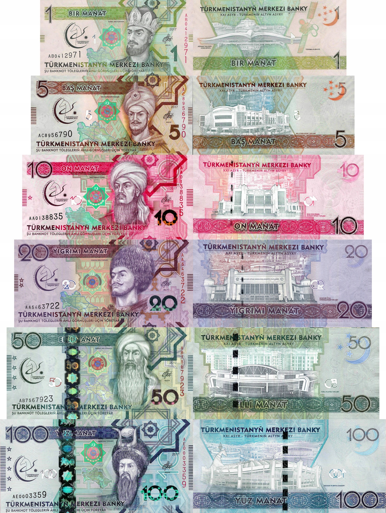 Turkmenistan 2017 zestaw 6 szt 1+5+10+20+50+100 manat P. 36-41 UNC Okolicz