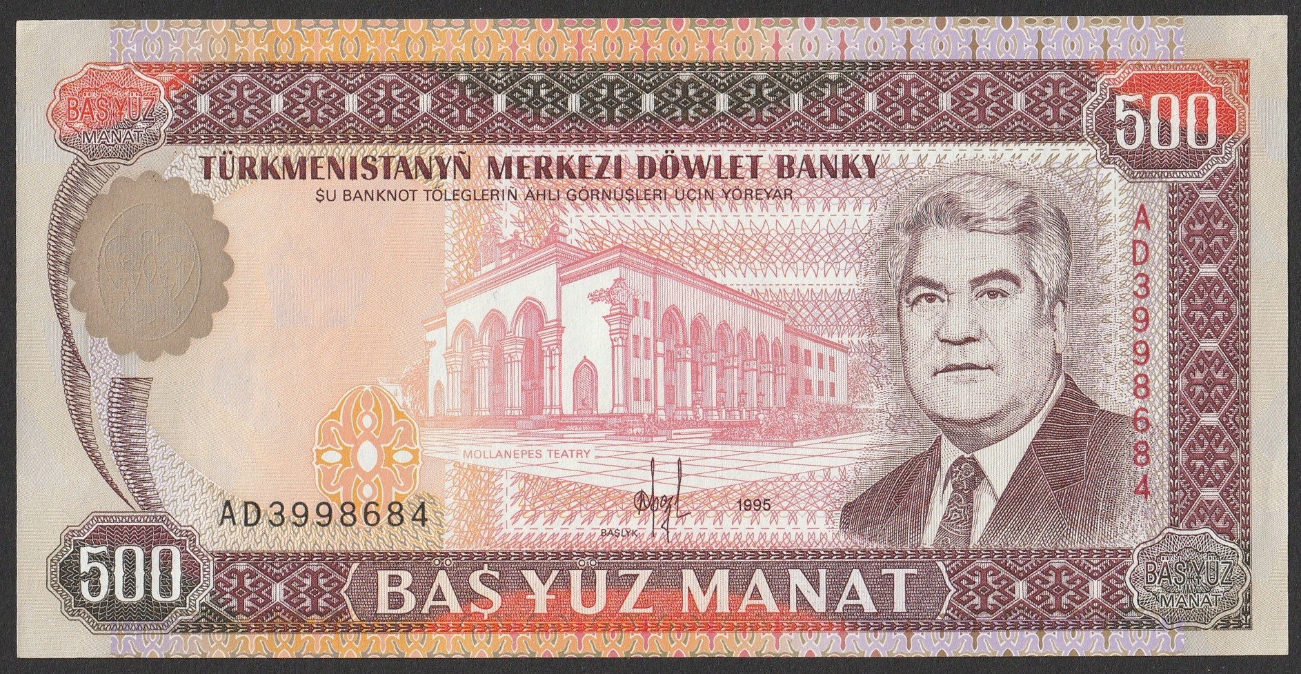 Turkmenistan 500 manat 1995 - AD - stan bankowy UNC