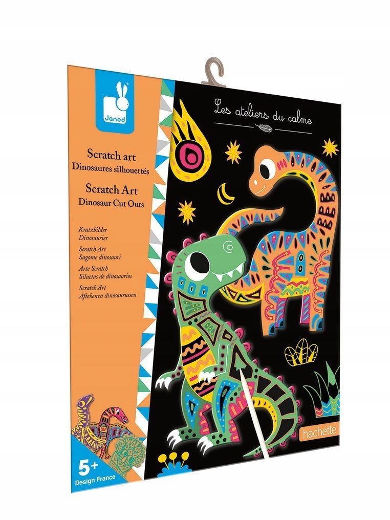 Креативний набір для подряпин динозаврів французької марки Janod містить 5 динозаврів із суцільного картону . Символи чорні, лише з барвистими контурами елементів, які поступово з’являються внаслідок подряпин верхнього шару. Набір оснащений пластиковою паличкою. Балансування - це для дитини довгі години залучення, і в той же час заспокоєння, замовчування веселощів та готових статуетки стане чудовим прикрасою дитячої кімнати. Набір був розроблений у Франції у співпраці з французькою медіа та видавничою групою Hachette. Він упакований у стильну картонну коробку. В ідеалі підходить для подарунка.