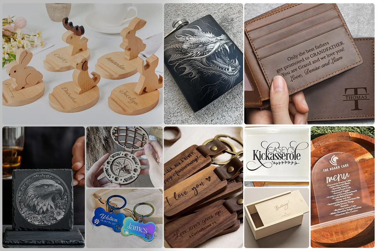 Сумісні матеріали: фанери, МДФ, тверда деревина, папір, метал з покриттям, паперовий крем, шкіра, пластик, бамбук