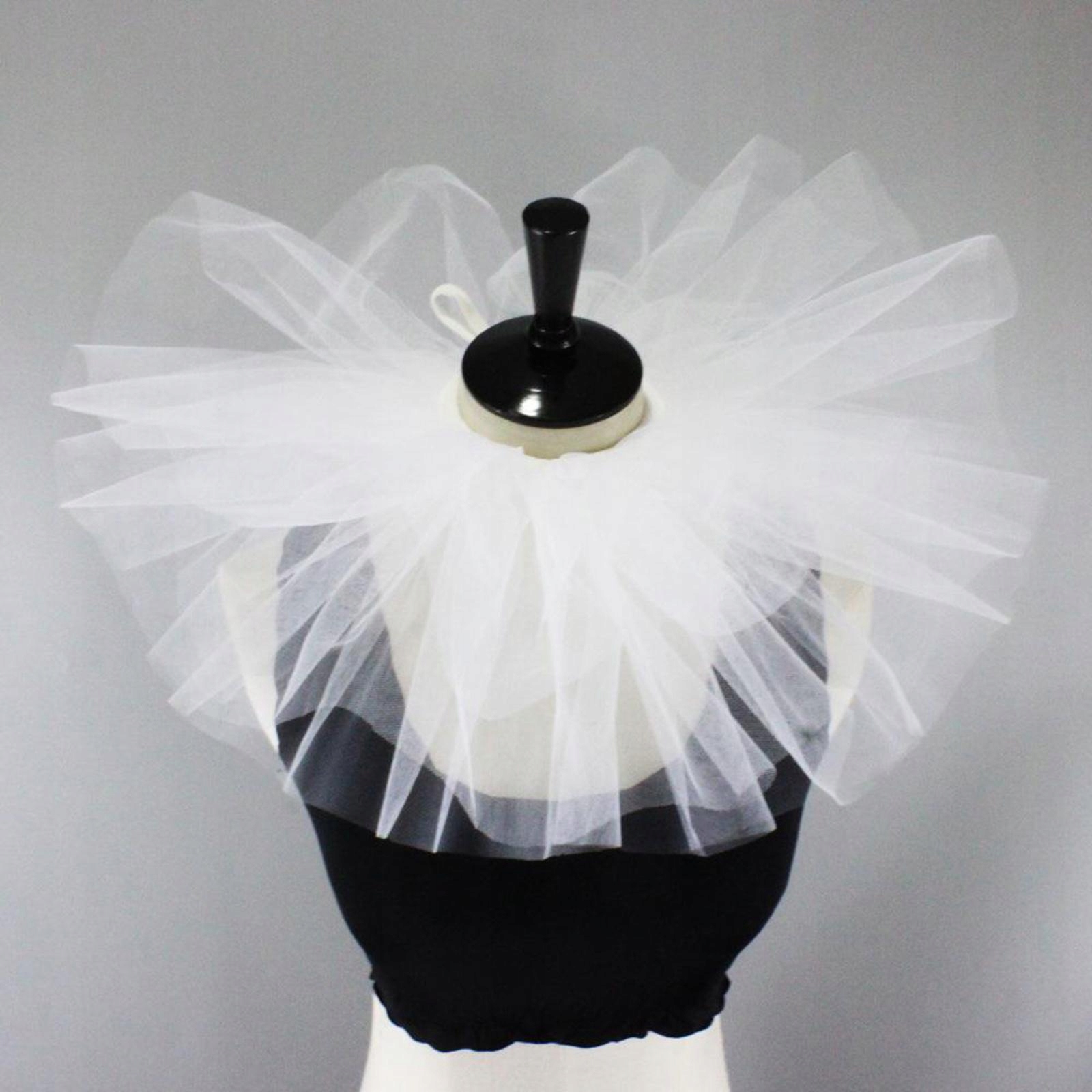 Комір з тюлю з нахмуренням, комір зі штучним коміром, міні -накидкою, волейбольним фріллом, білим
