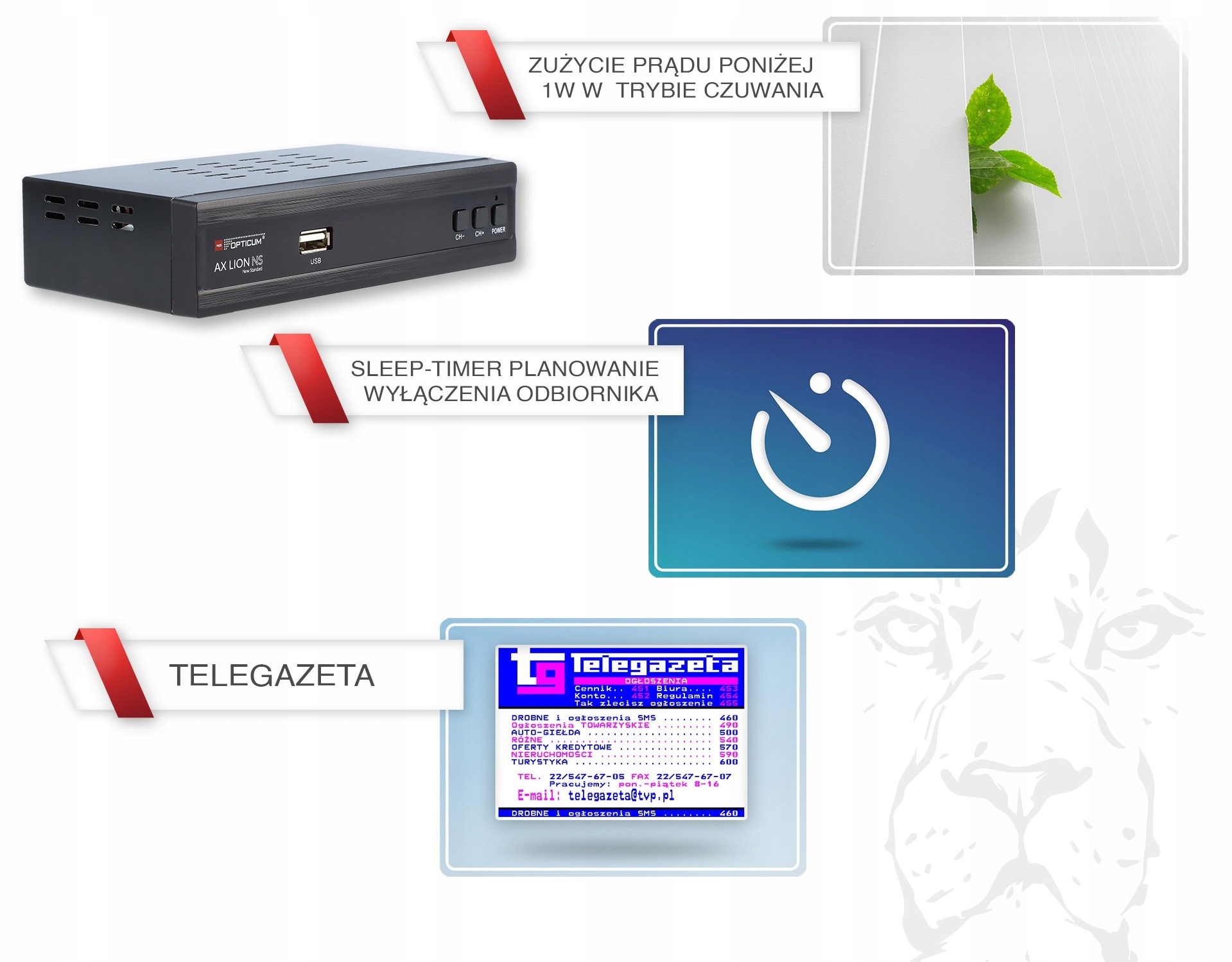 - Низьке споживання електроенергії в режимі очікування нижче 1w