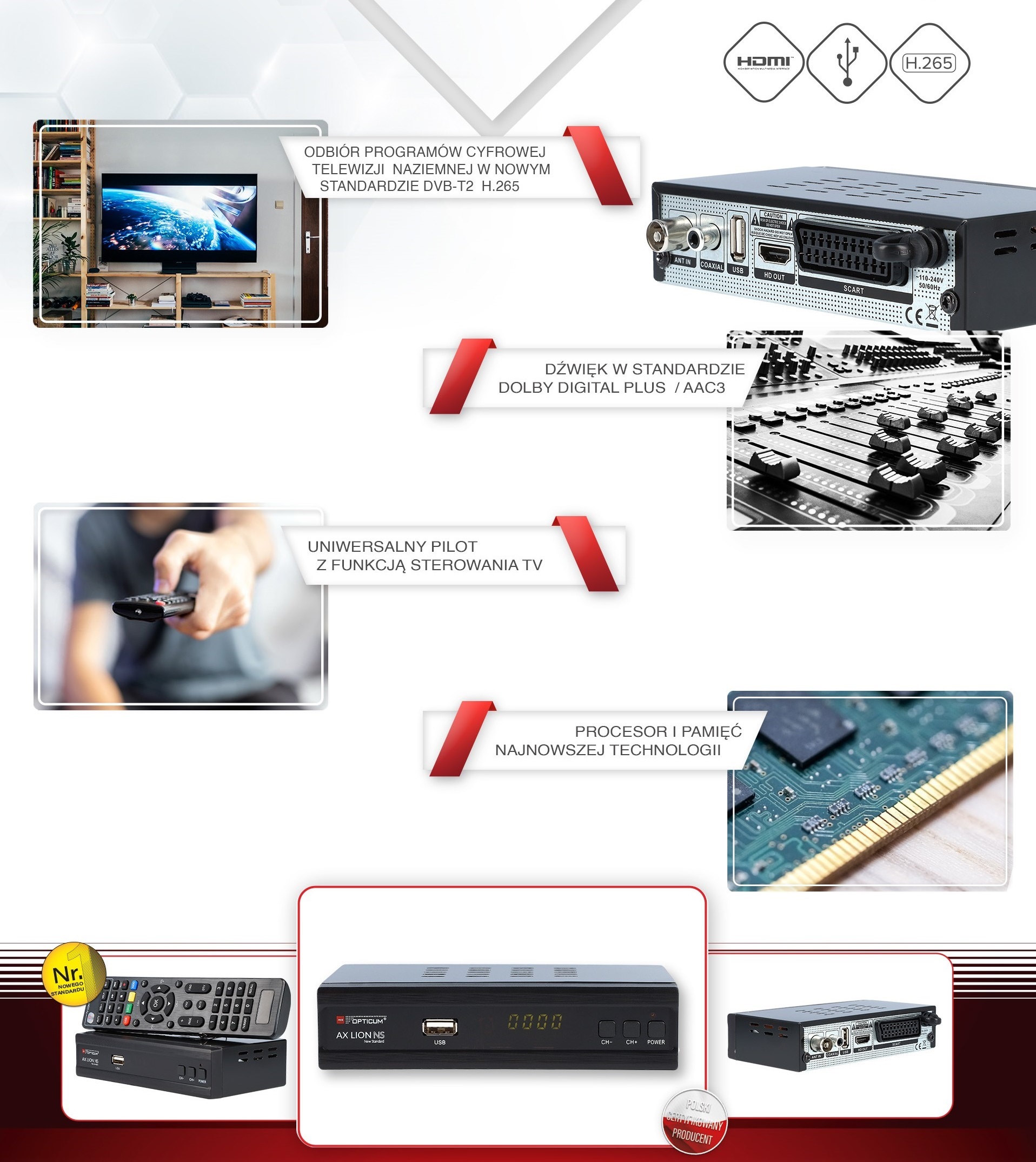 - отримання наземного телебачення в DVB-T2 Стандарт