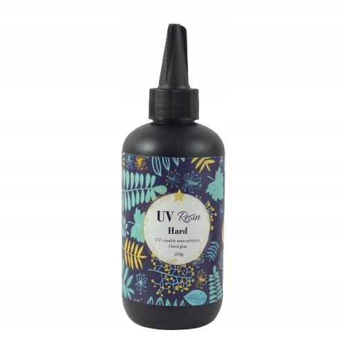 УФ смола, ідеально прозора, затверділа під впливом УФ світла - упаковка 200г. Смолу можна змішувати з барвниками, блискітками та блискітками. Готова суміш твердне за допомогою спеціальної УФ-лампи. Час затвердіння приблизно 3 хвилини - залежно від кількості смоли.
