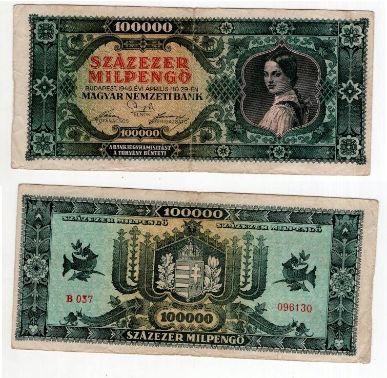 УГОРЩИНА 1946 100000 МІЛЬЙОНІВ ПЕНГО (МІЛПЕНГО)