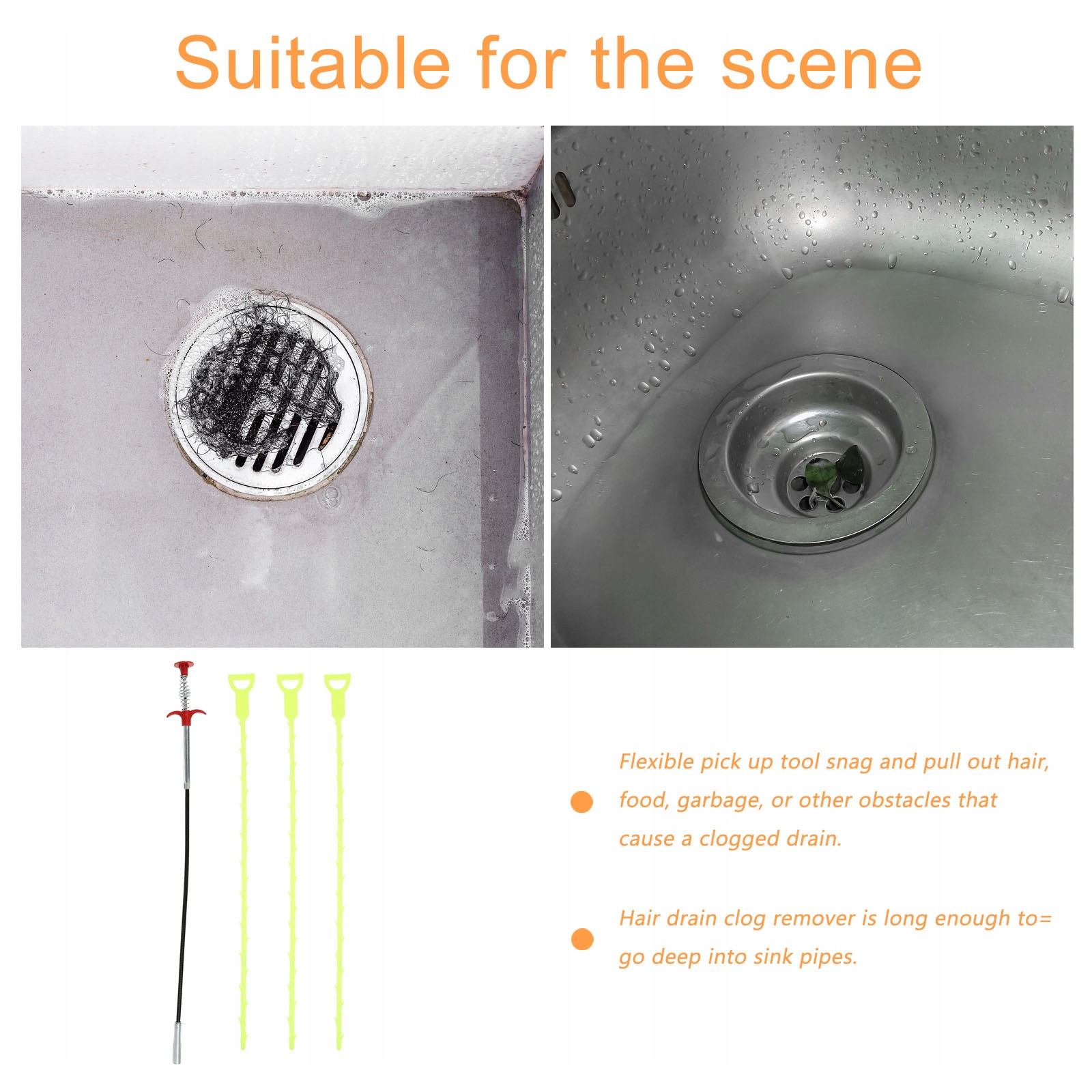 Цей набір для видалення засміченої каналізації виготовлено з високоякісного матеріалу, який витримує тривале використання. Містить сталь і матеріал ABS, який має високу міцність, його нелегко деформувати. Тонка робота, забезпечує практичність. Цей набір для видалення засмічення зливу зробить очищення каналізації легшим і плавнішим.