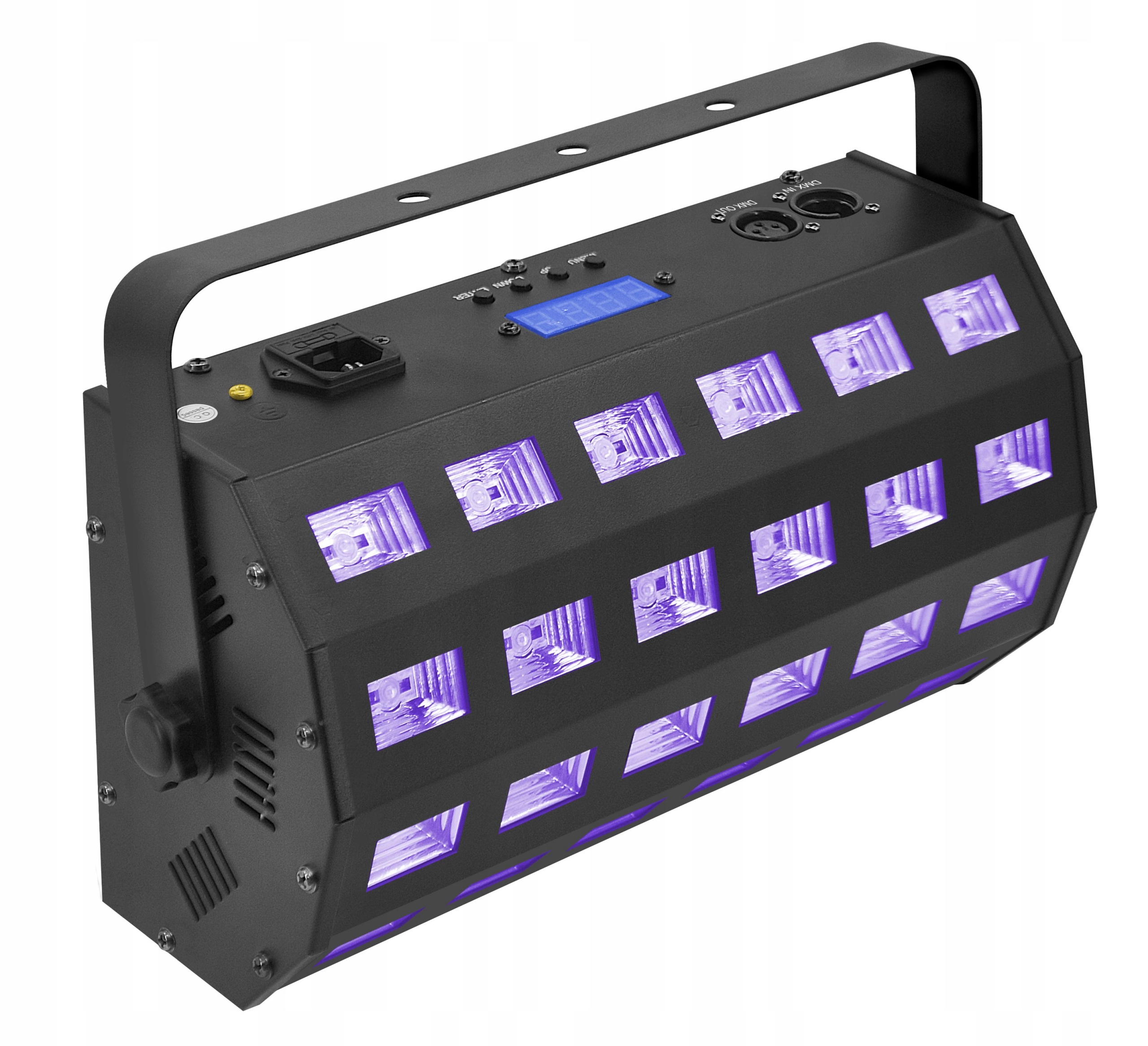 LIGHT4ME UV 24 + STROBE DMX — це професійний сценічний ультрафіолетовий прожектор із функцією стробоскопа, оснащений 24 потужністю 3 Вт діоди LED, що працюють з ультрафіолетовим світлом і білим спалахом. Пристрій відмінно справляється зі своїм призначенням в танцювальних клубах, дискотеках та інших освітлювальних установках, в яких ультрафіолет створює ефект світіння певних кольорів.