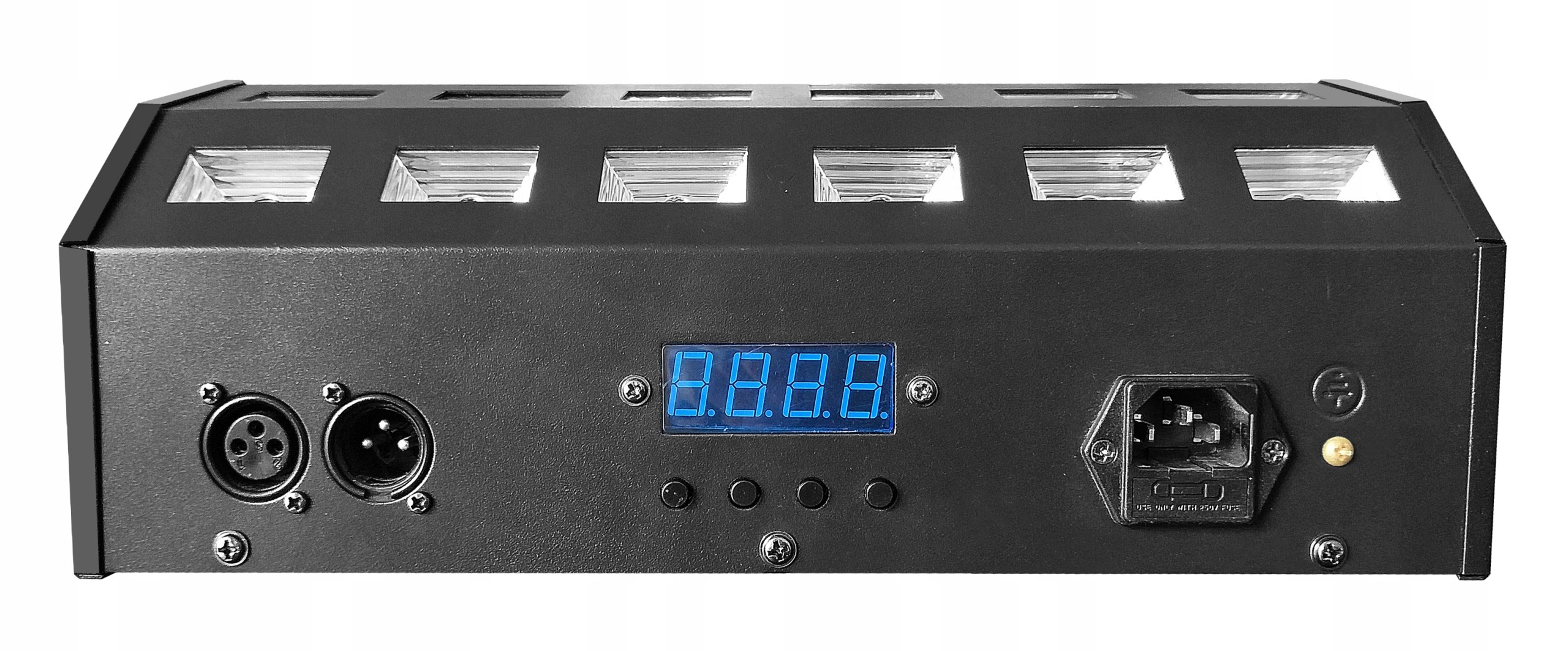 Електронні компоненти LED-ефект укладені в міцний металевий корпус, оснащений ручкою, що дозволяє монтувати прилад на штативах, фермах і освітлювальних пандусах. У вигнутій передній частині корпусу розташована система з 24 лінз, що розсіюють світло під кутом майже 180°. Завдяки цьому цей УФ-освітлювач здатний охоплювати світлом дійсно велику площу. Пристрій може працювати в автоматичному режимі, синхронізувати свою роботу з ритмом музики завдяки вбудованому чутливому мікрофону або управлятися за протоколом DMX. Завдяки вхідним/вихідним роз’ємам XLR він також може працювати в режимі головний/підлеглий. Потім кілька підключених пристроїв працюють так само, як і перший пристрій у лінійці.